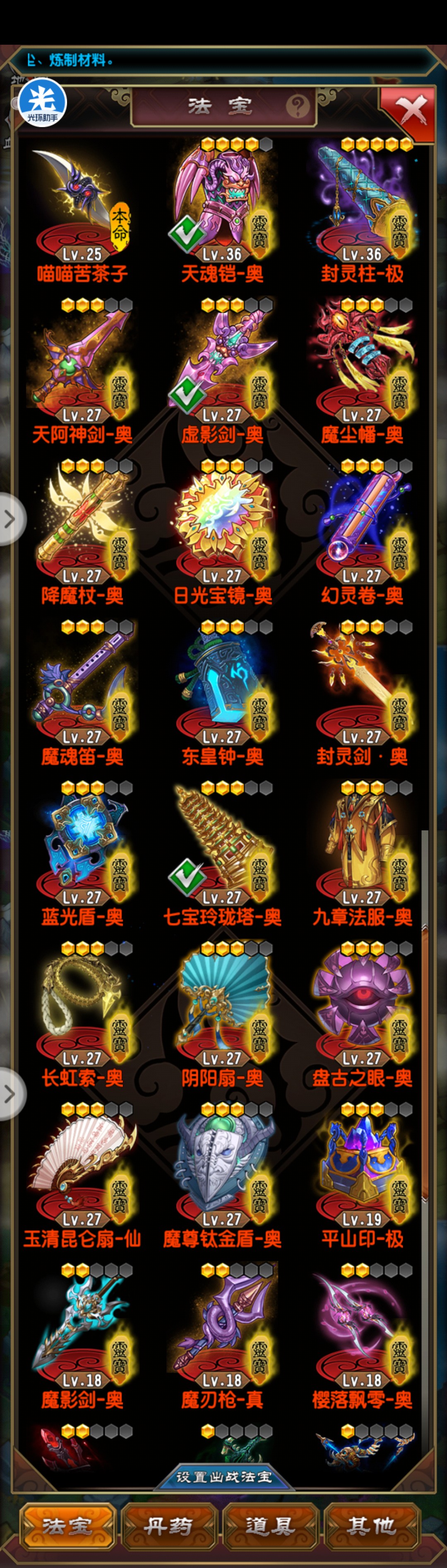 满级号,法宝已毕业,剩余资源多多。可刀