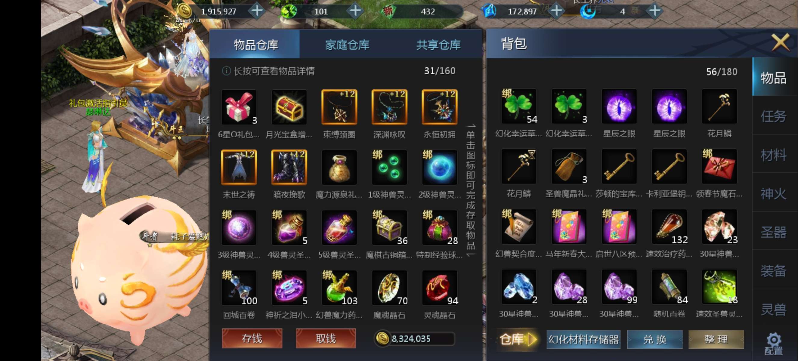 精品血族,仓库,背包全开,小年兽齐全。