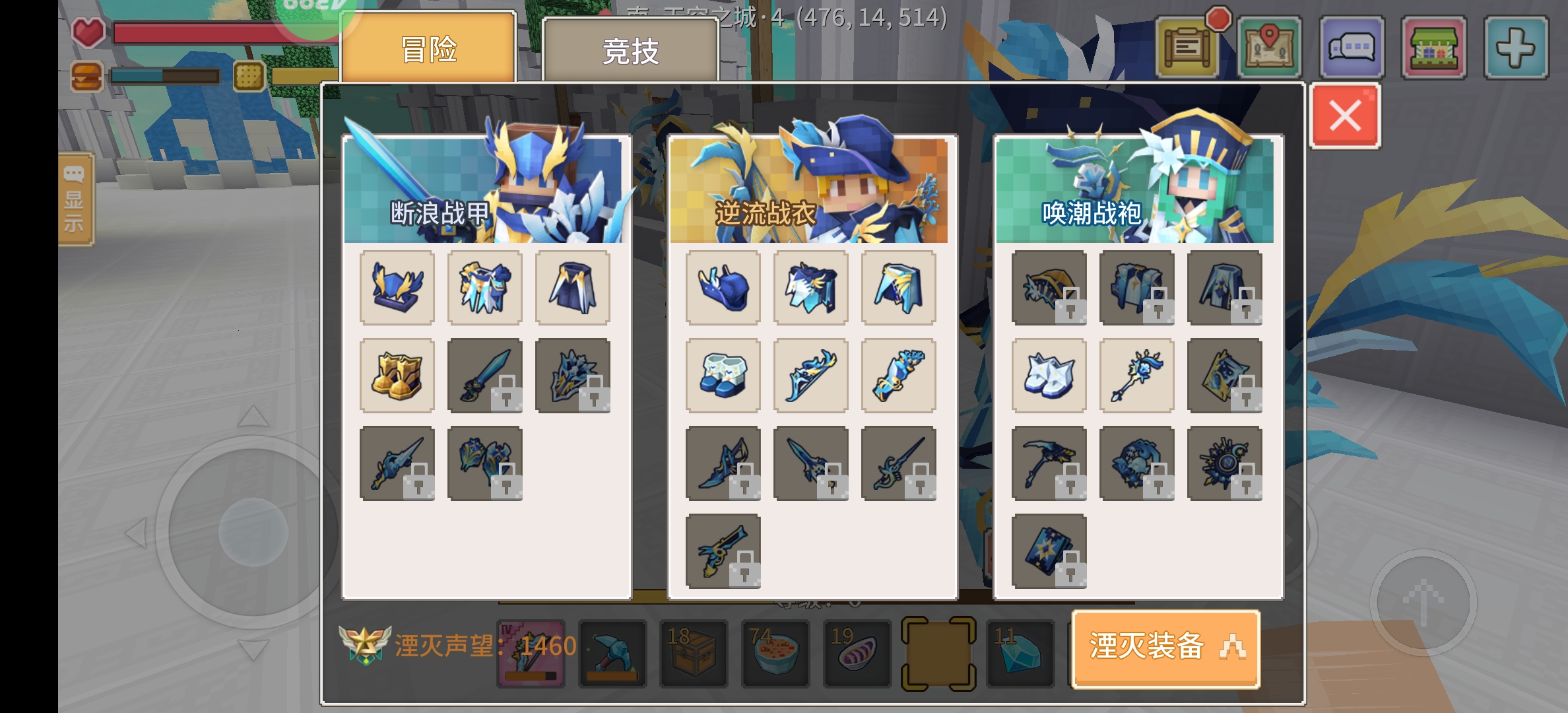 竞技号4盾8飞,7生命7远程7双抗,5级近战5级魔法强度。多饰品多时装多解锁