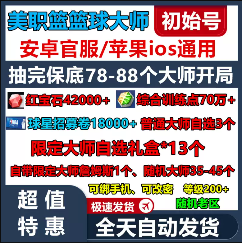 NBA/美职篮篮球大师自抽号苹果安卓官方服Tap初始/号手游账号