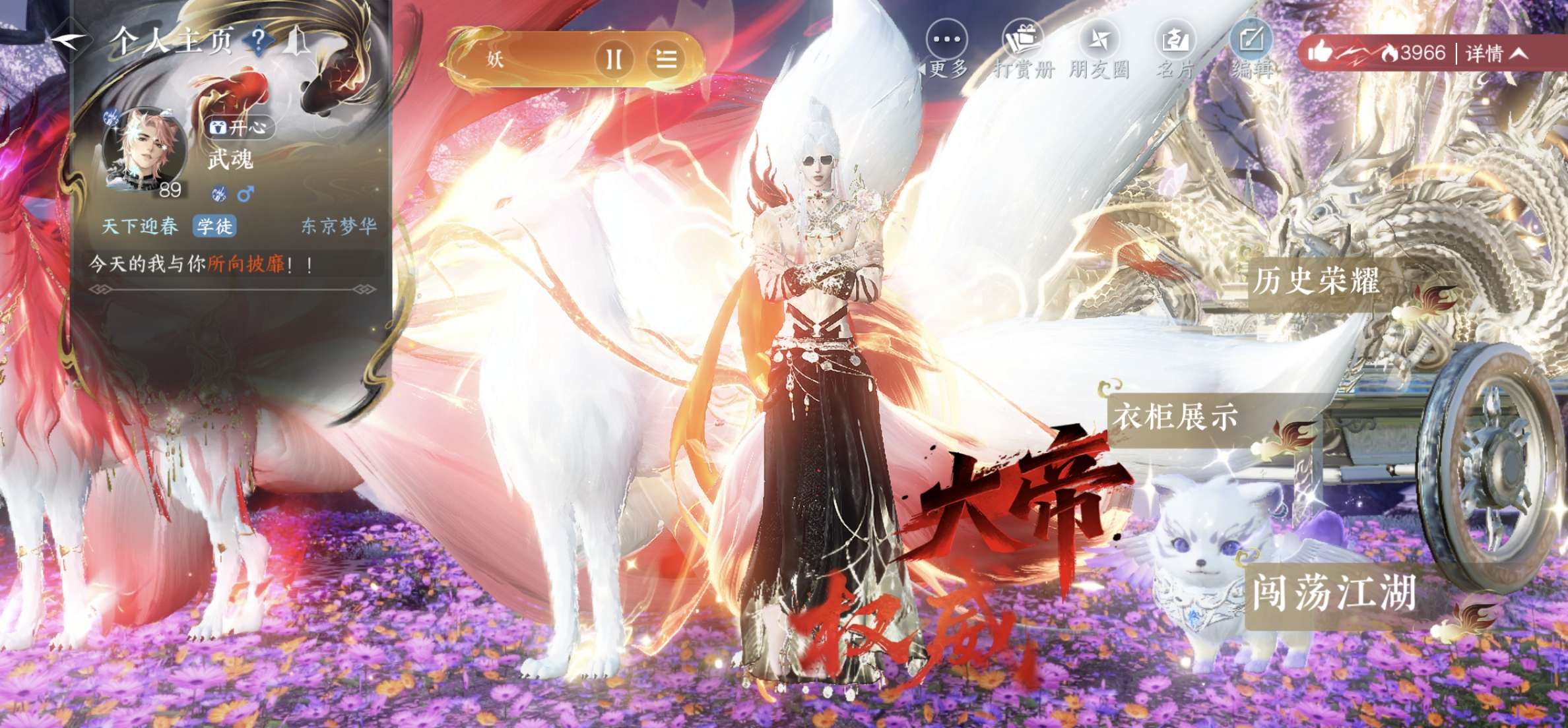 已用天赏50颗,未用天赏3颗,15灵韵,进度全部100有转职转性丹,双狮子车坐骑,大狐狸坐骑