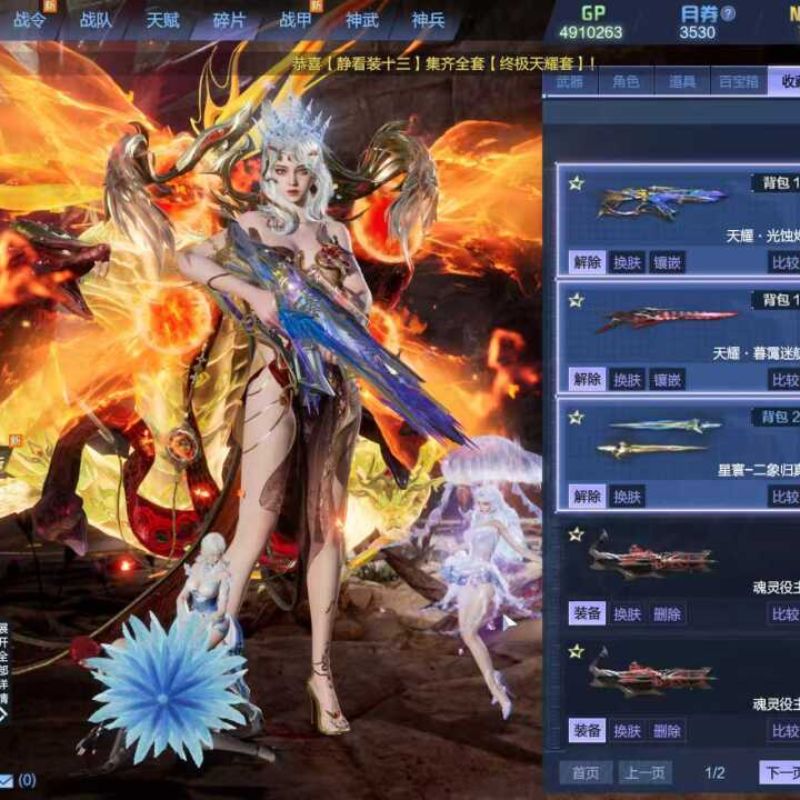 N2324电信区168级标题:天耀套灵汐幻域套湮灭之影赤龙安娜17宠伴生观星6英雄锋影臂铠爆破塔防女帝 描述:天耀套灵汐幻域套湮灭之影赤龙安娜赤龙5头盔灵蝶5戒指9手环安娜多角色17宠物伴生灵观星6英雄锋影臂铠多陷阱皮肤女帝