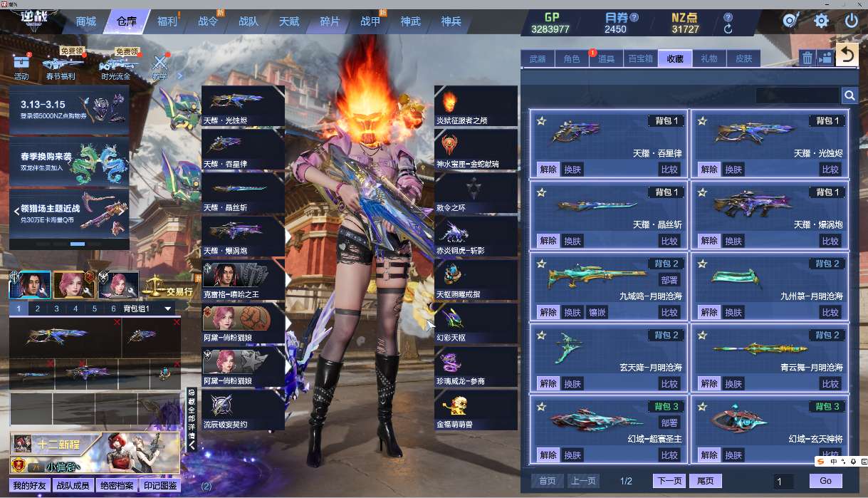 逆战爆破号,天梯号,天王,朱雀,炽鬼, 原子,圣光,混沌,鹰王,海王。