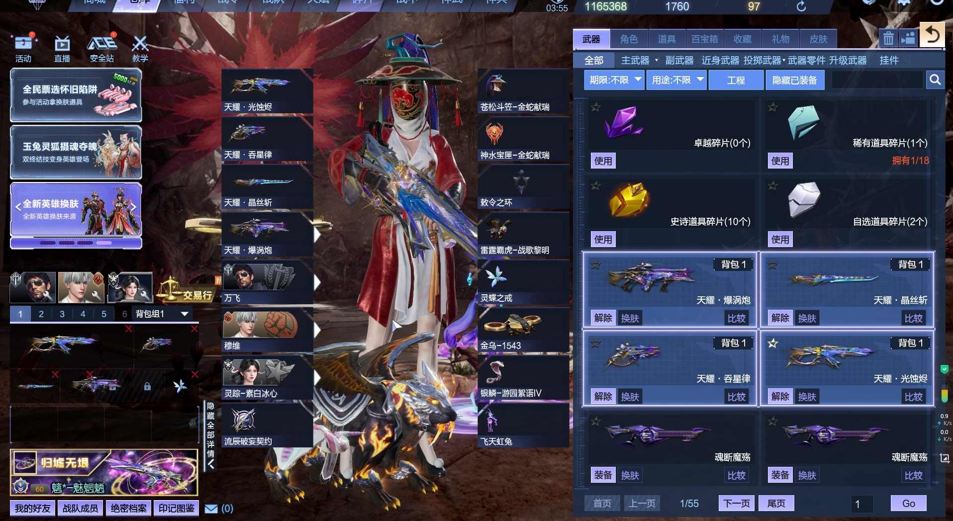 魔鲲66奶,现有390史诗碎片,影精魄(这次换购还未参加)收藏武器可换购