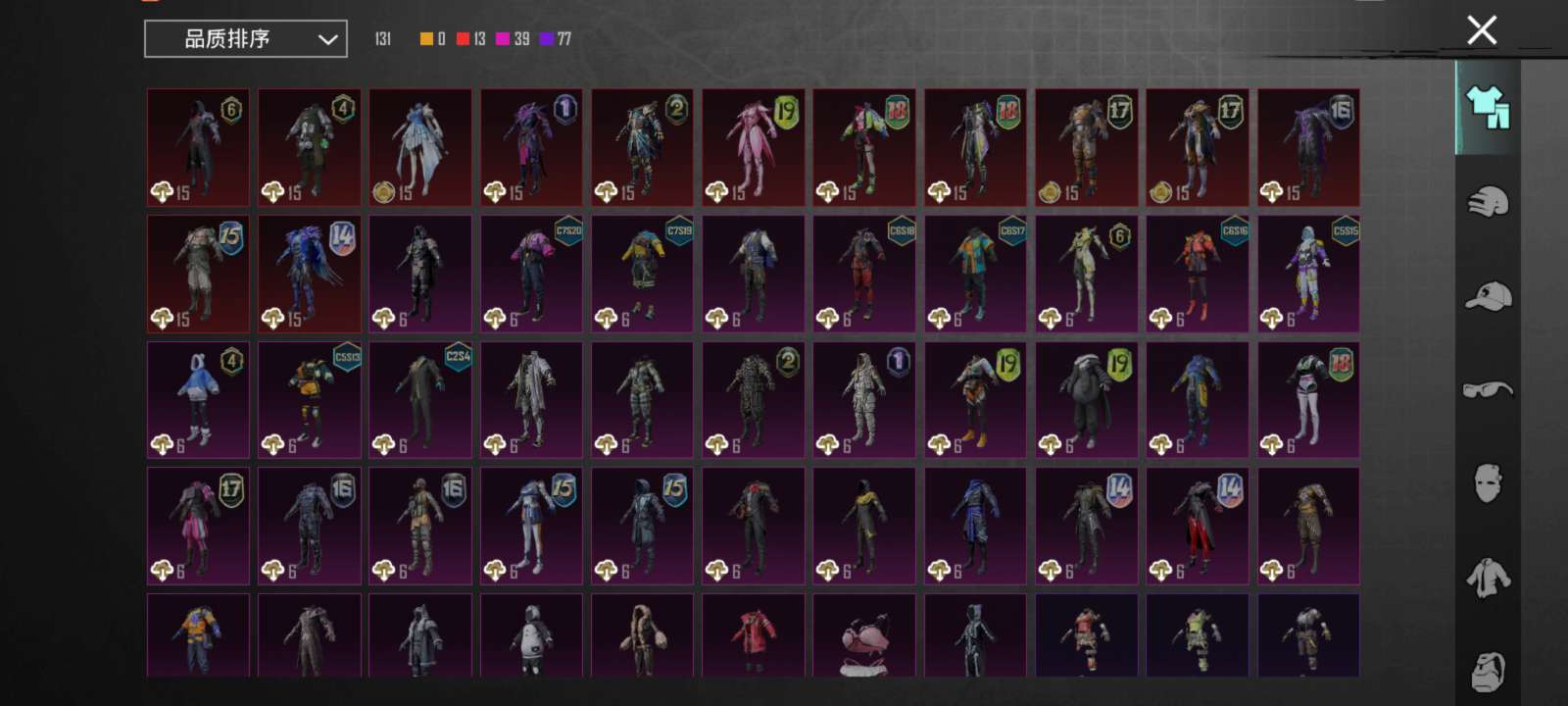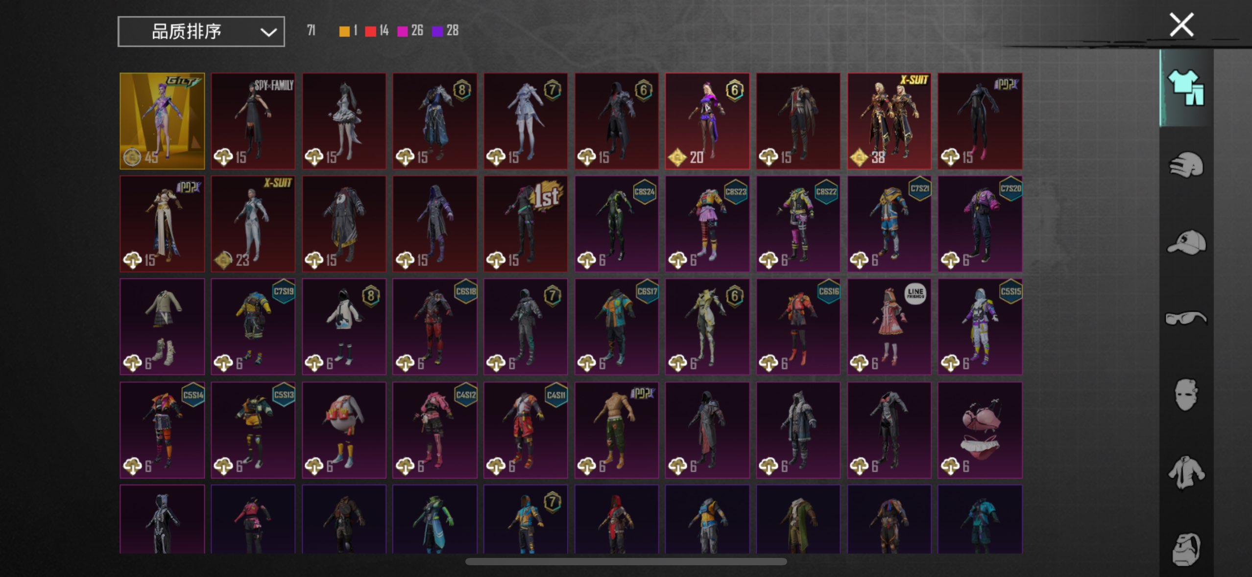 四年老号众多身法套装,还有各式枪皮绝对够用