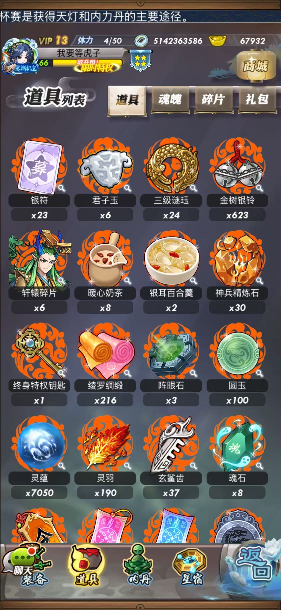 极品养老号,绝版弟子全戎装称号神兵,新弟子也是全皮戎装,月卡上千天,资源多背包还有一堆没打开的看图吧