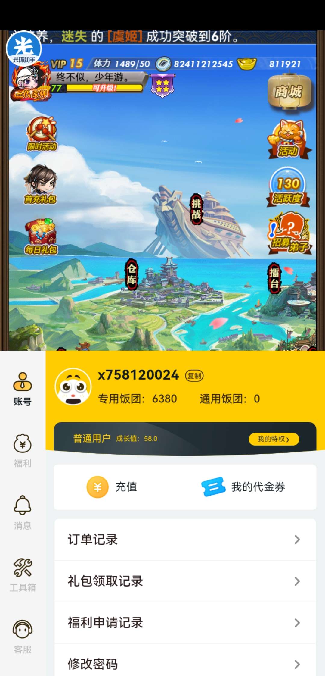首充账号 充648.00元(6480元宝)带奖励可代充续充
