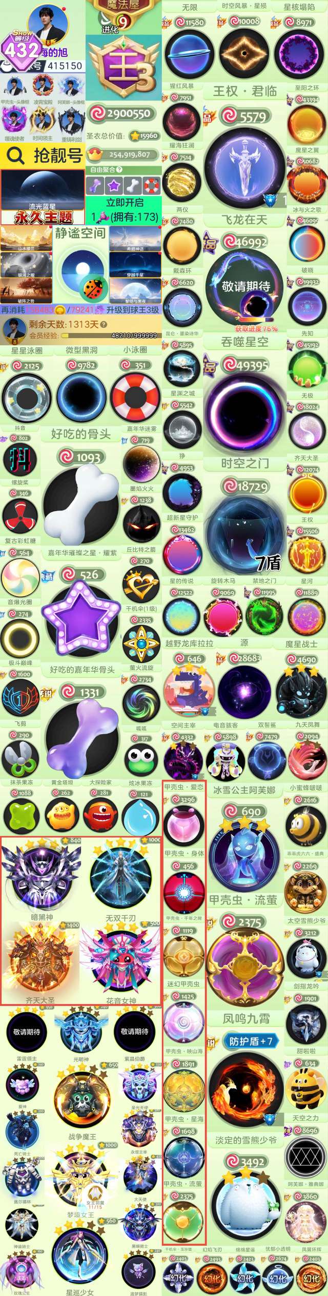 【土星 璀璨 泳圈 小粉星 关羽魔灵 】天狐 超新星 量子 抹茶 水滴 60吞噬 233show 8