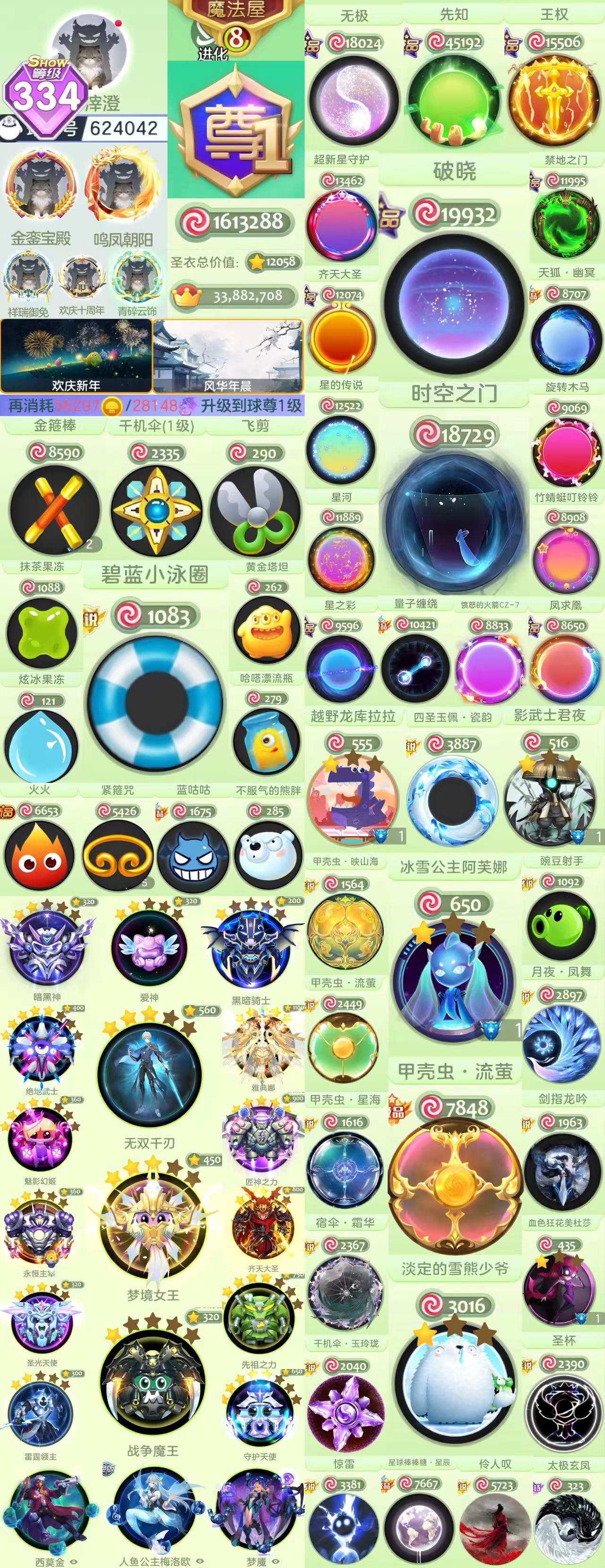 【冰龙王】623秀 475万皮 飞龙黑洞时空钛金千机伞 4泳圈 源 3款阿芙娜 碧霄龙盘满级