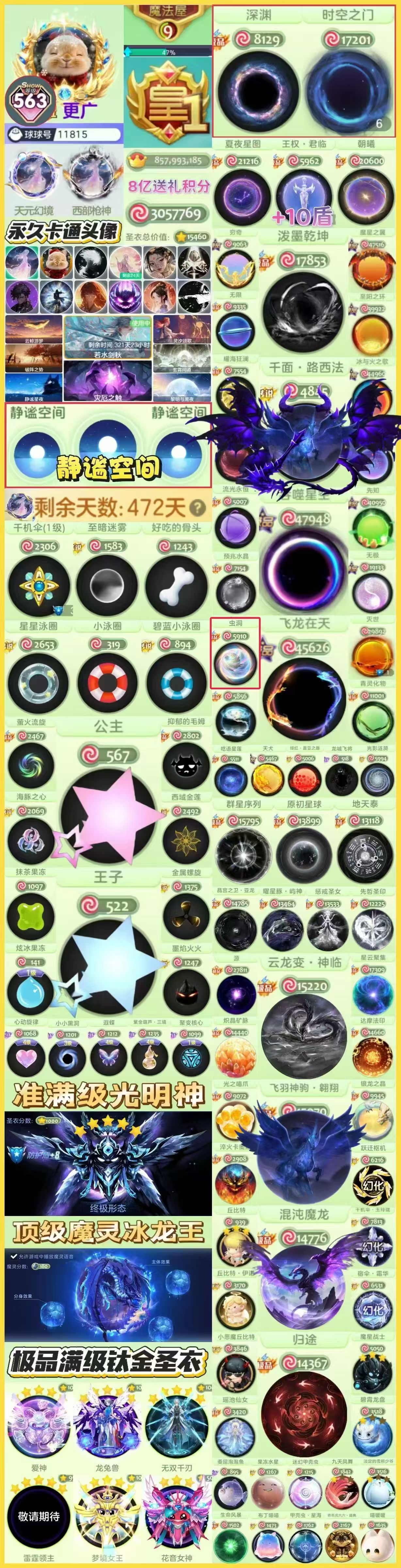 【623show 皇 飞龙 恶魔 黑洞 静谧 王子 璀璨 冰龙王 高赛季】时空 虫洞 魔星 灭世