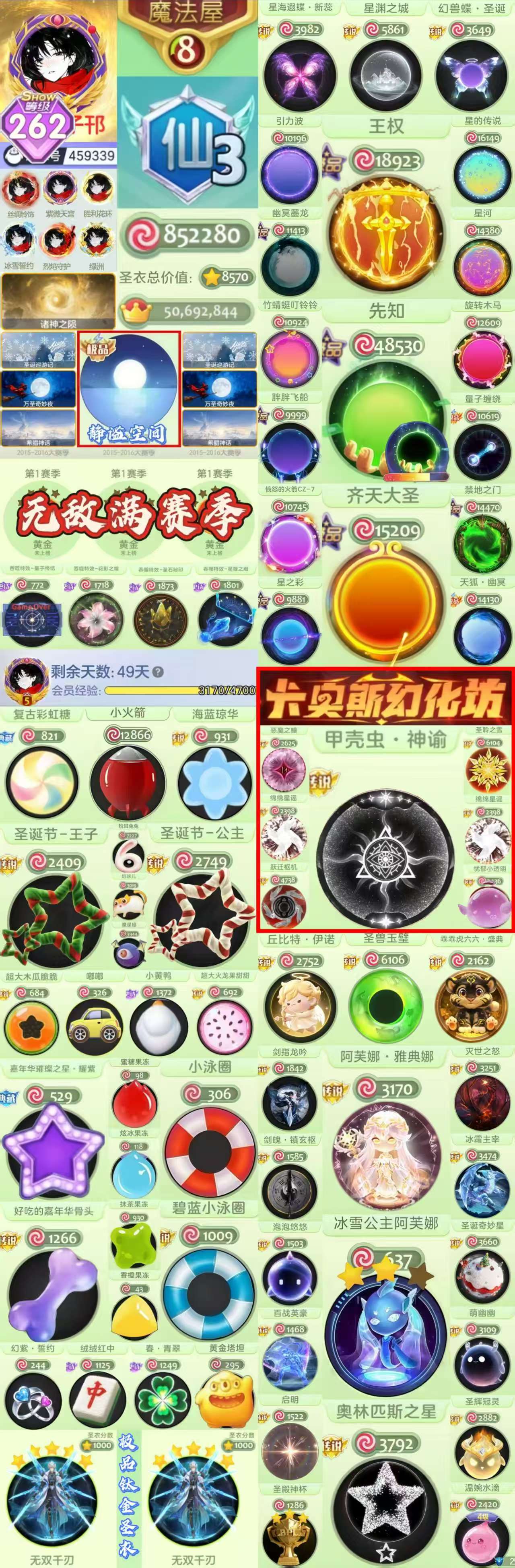 【262show 满赛季 静谧 二级阿芙娜 甲壳虫·神谕 圣诞王子.公主 】大圣 王权 璀璨 骨头
