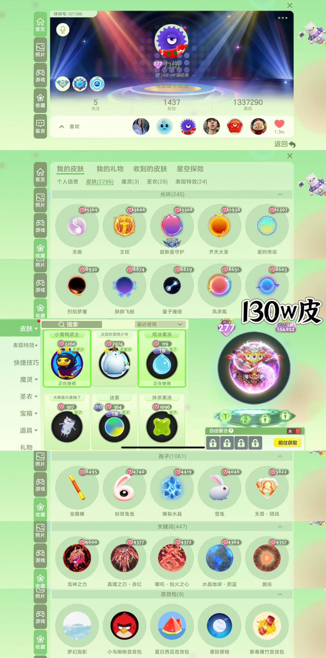 280show 王权 大圣 小火箭 抹茶 满级花音 130w皮
