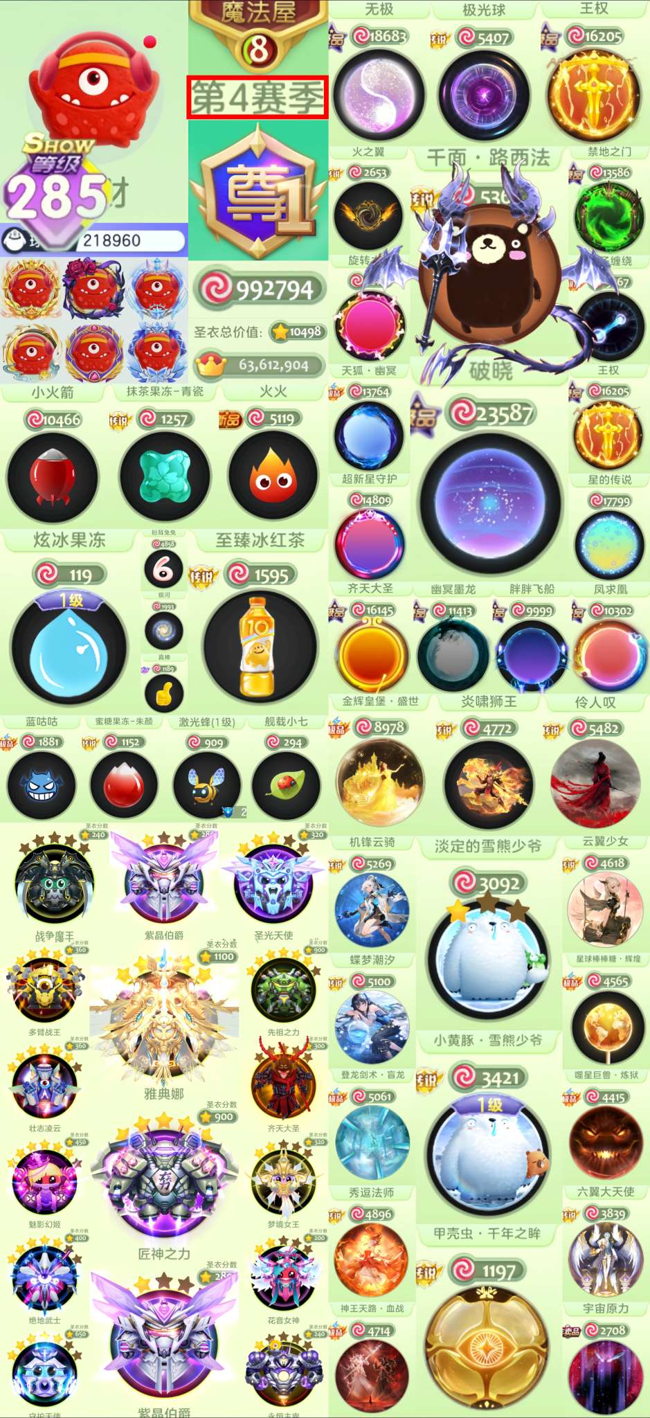 【285show 尊 破晓 第4赛季 灰色路西法 大白 冰红茶】无极 大圣 甲壳虫 满级雅典娜 水滴