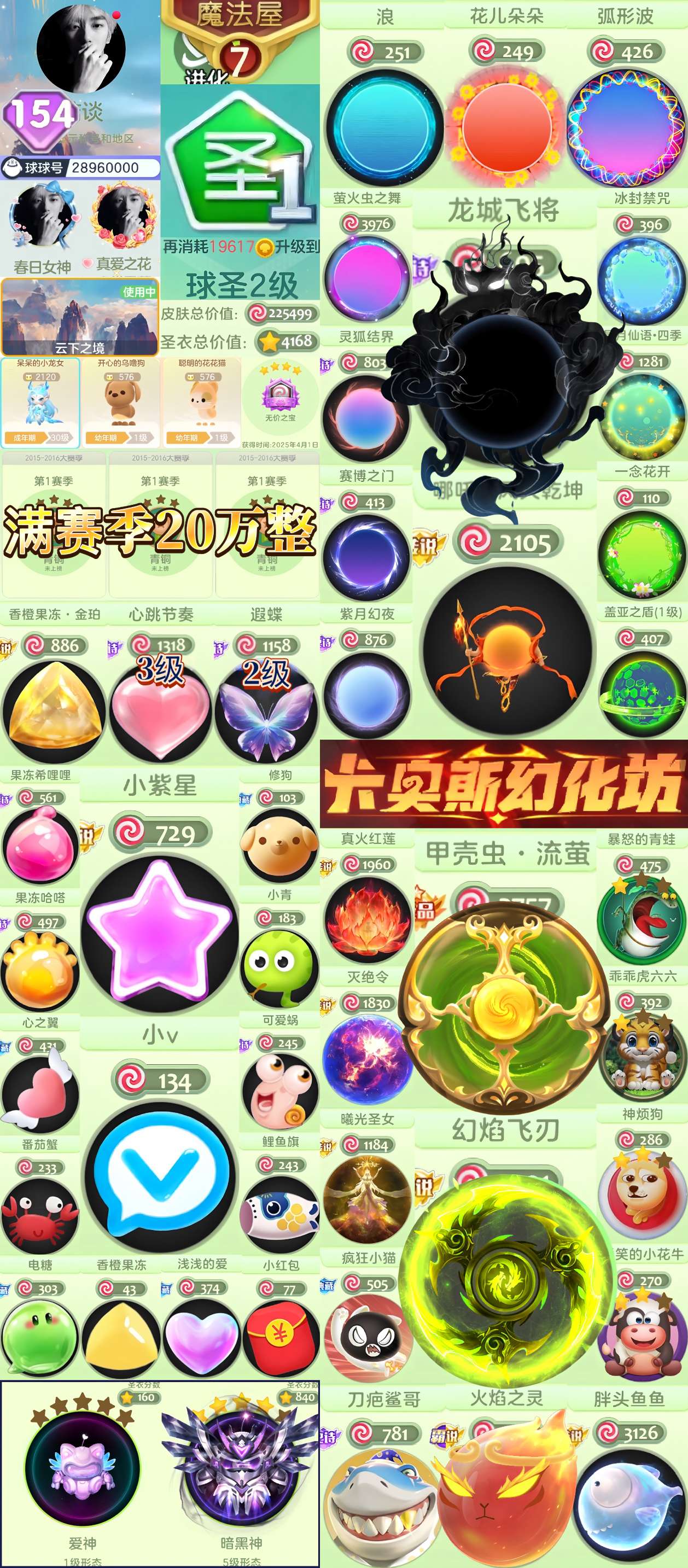 满赛季20万整 小紫星 小v孢子 龙城飞将 甲壳虫十字架漩涡 幻焰飞刃
