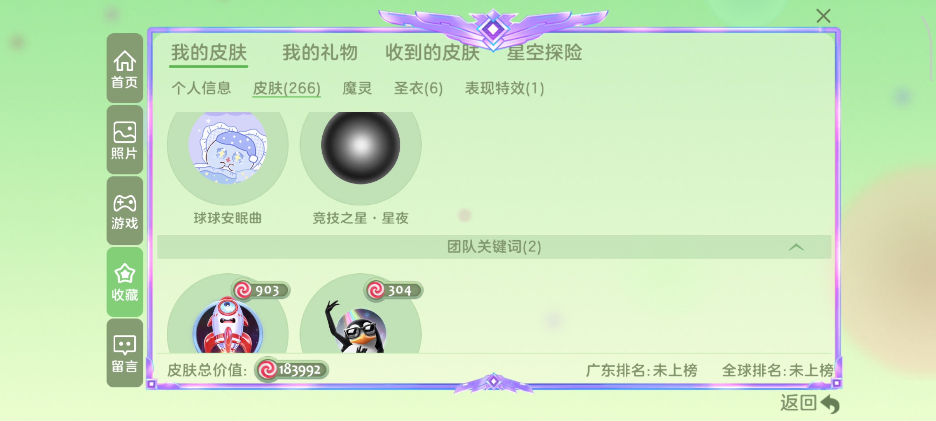 球球退游号,皮肤光环多