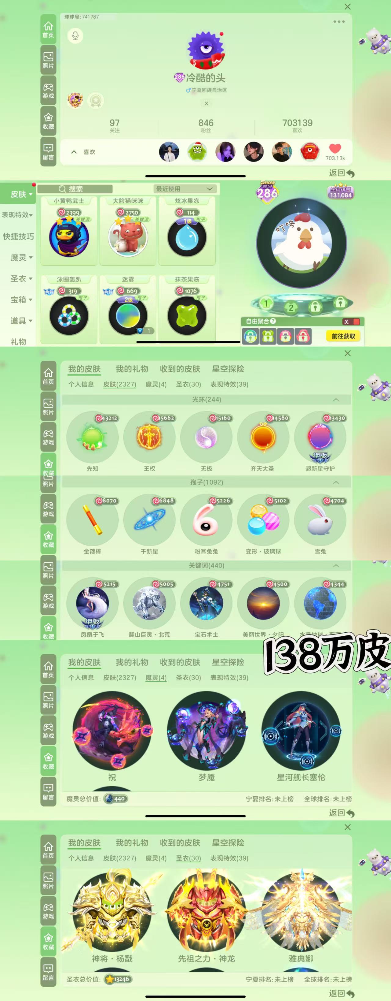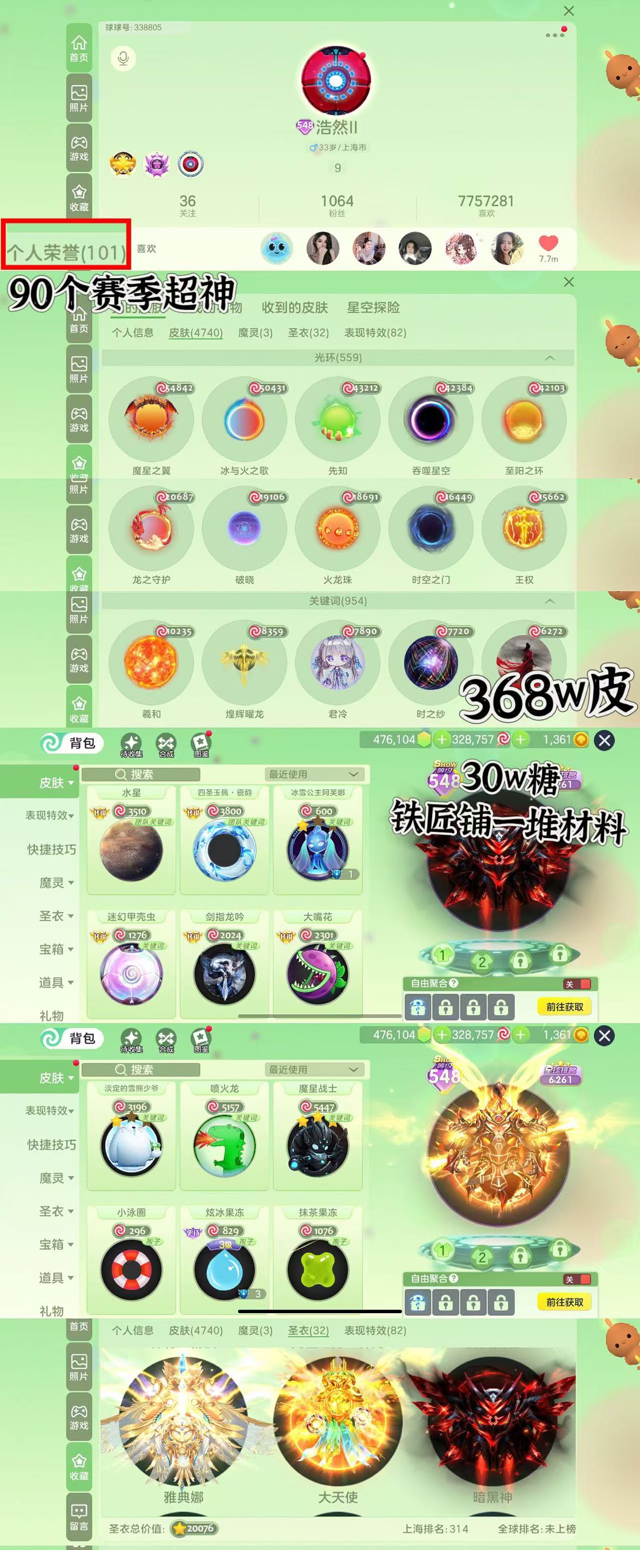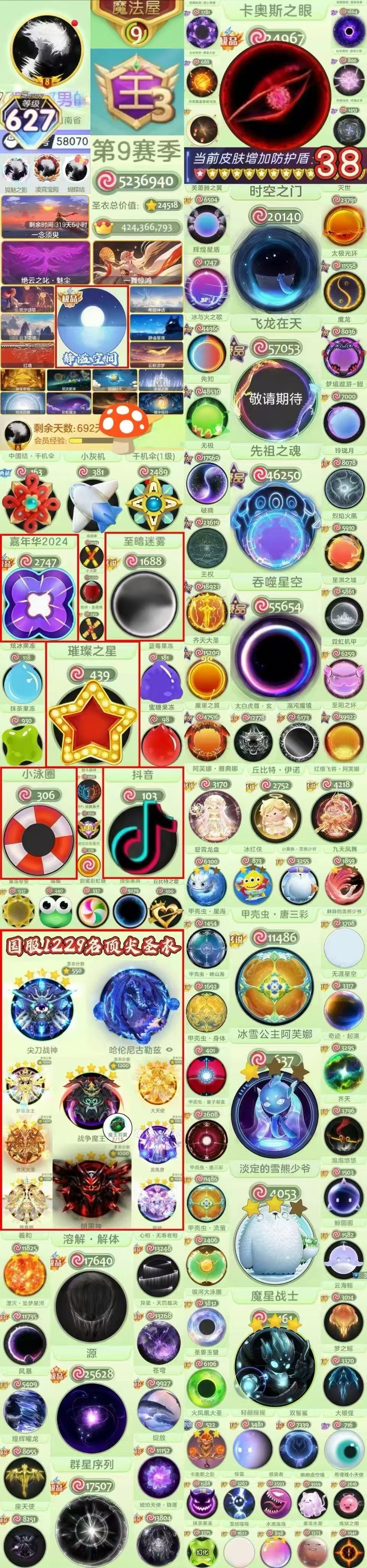 高赛季,大量满级圣衣,多皮肤,还差10万金蘑菇王一