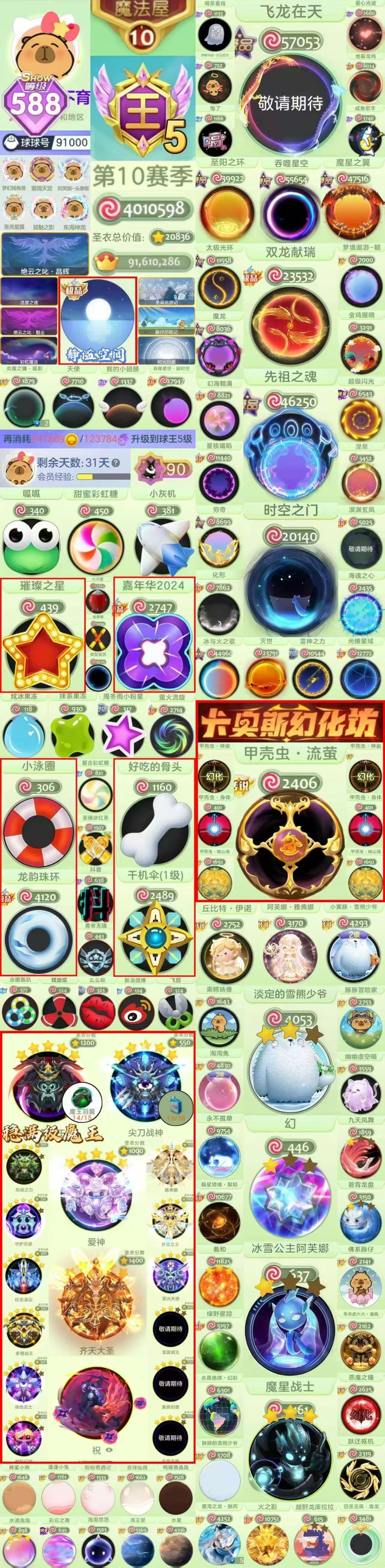 【286show 先知 无极 抹茶 泳圈轰趴 魔灵祝 】大圣 王权 金箍棒 迷雾 水滴 满级小黄鸭武