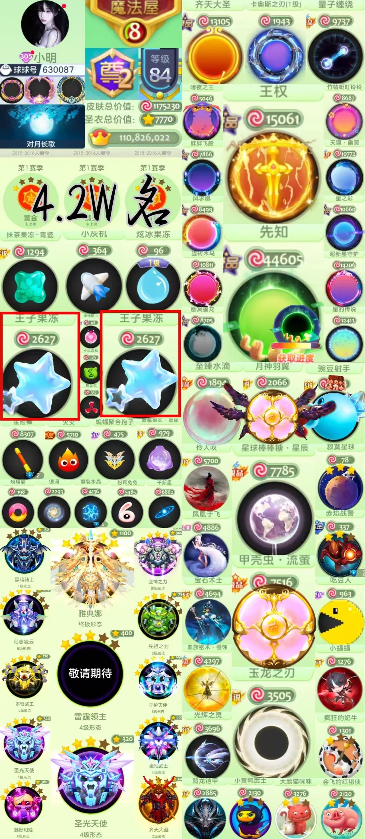满赛季4.2万排名尊号王权齐天王子果冻小灰机甲壳虫流萤十字架玉龙之刃敬请期待不带ID