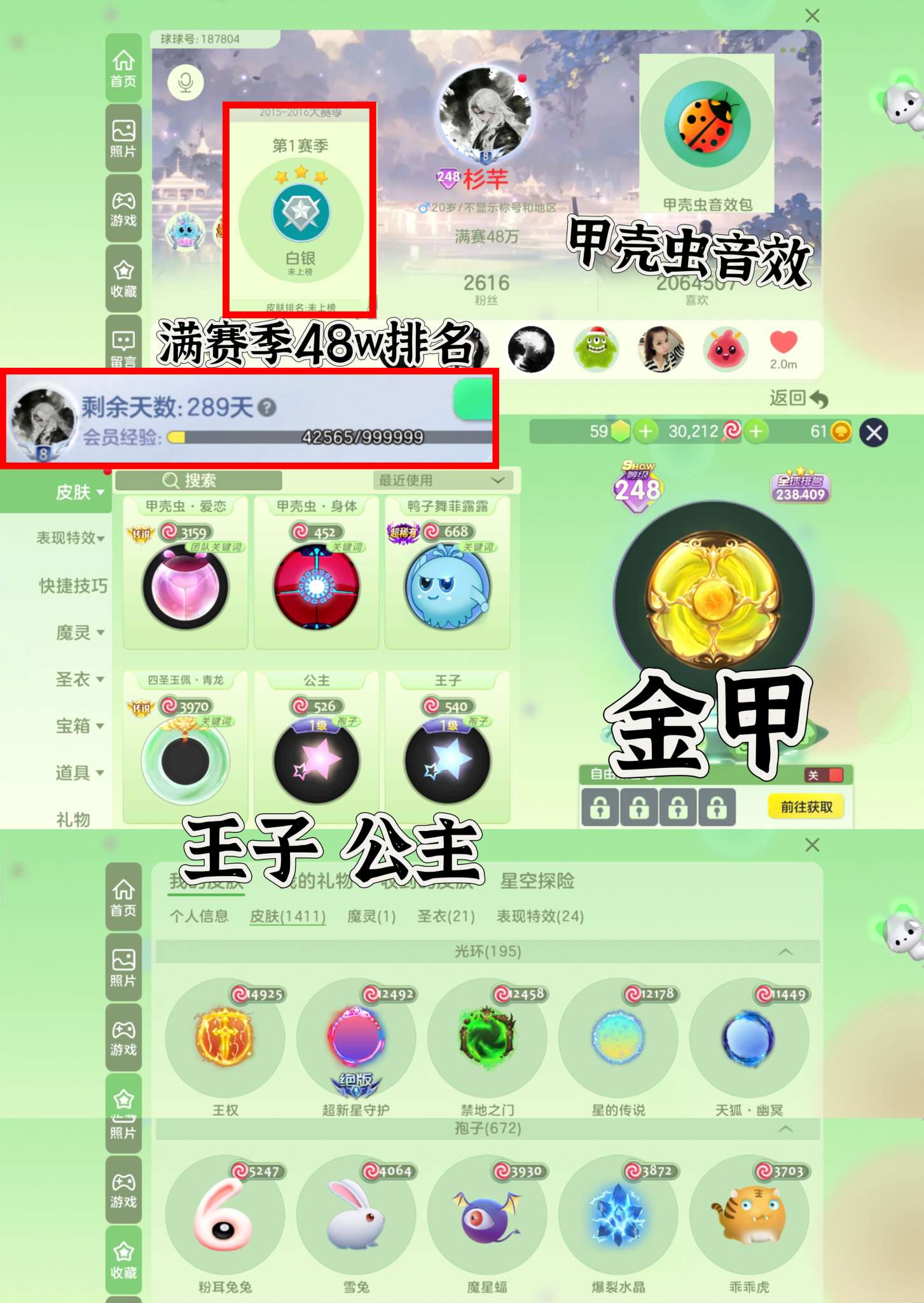 【满赛季48w排名 王子 公主 十字架金甲 甲壳虫音效 】王权 甲壳虫爱恋 鸭子舞 小野菊