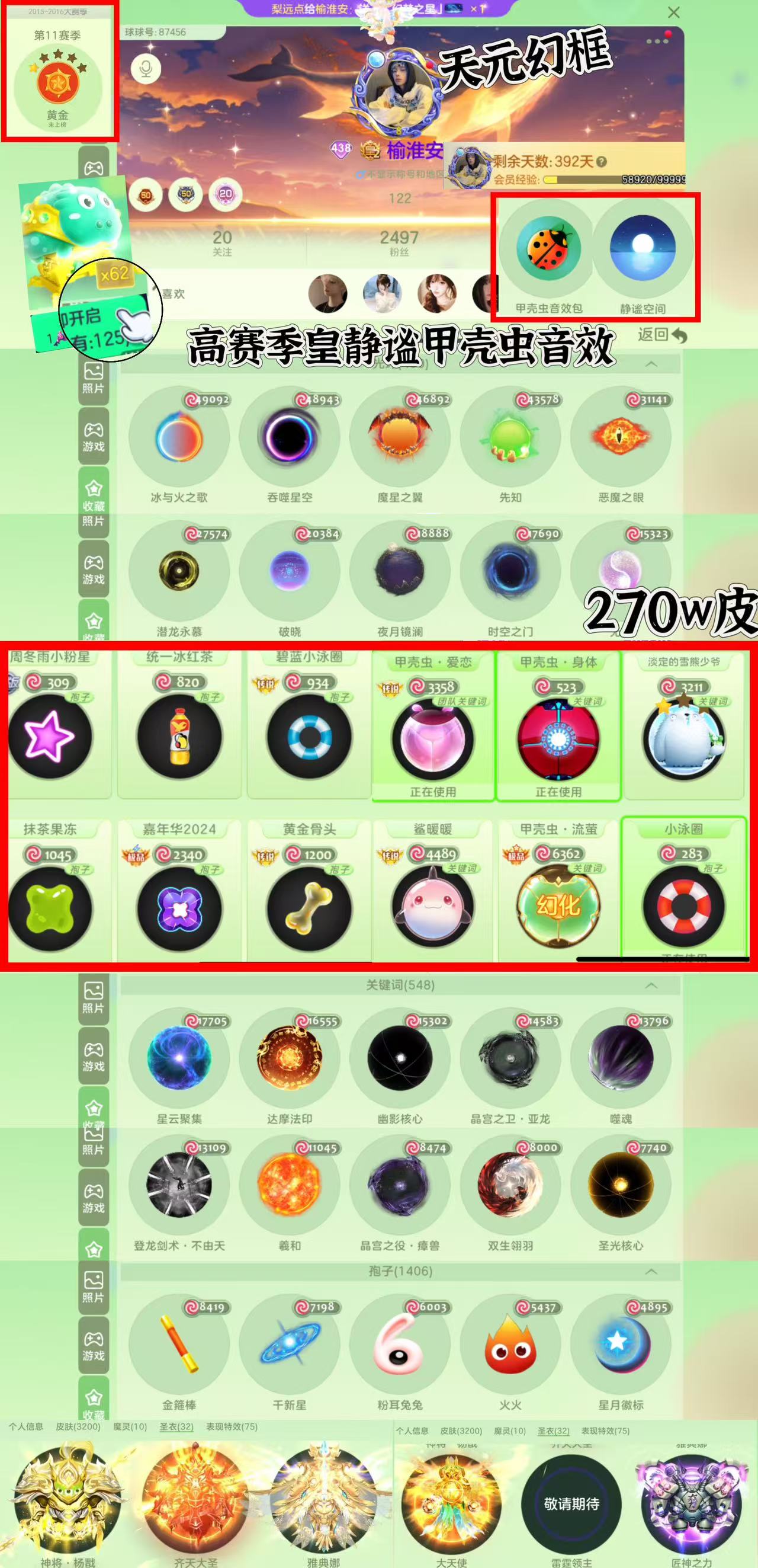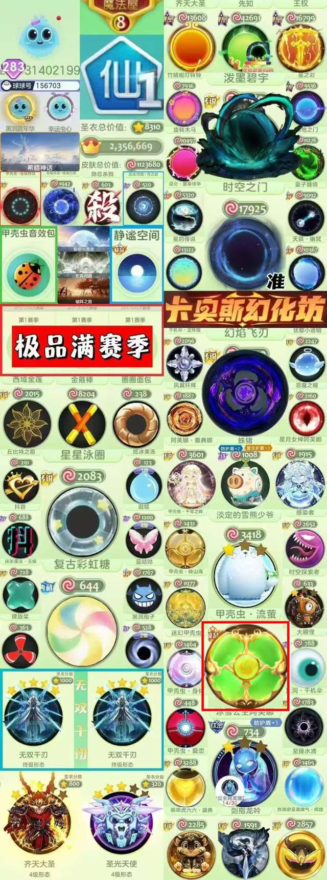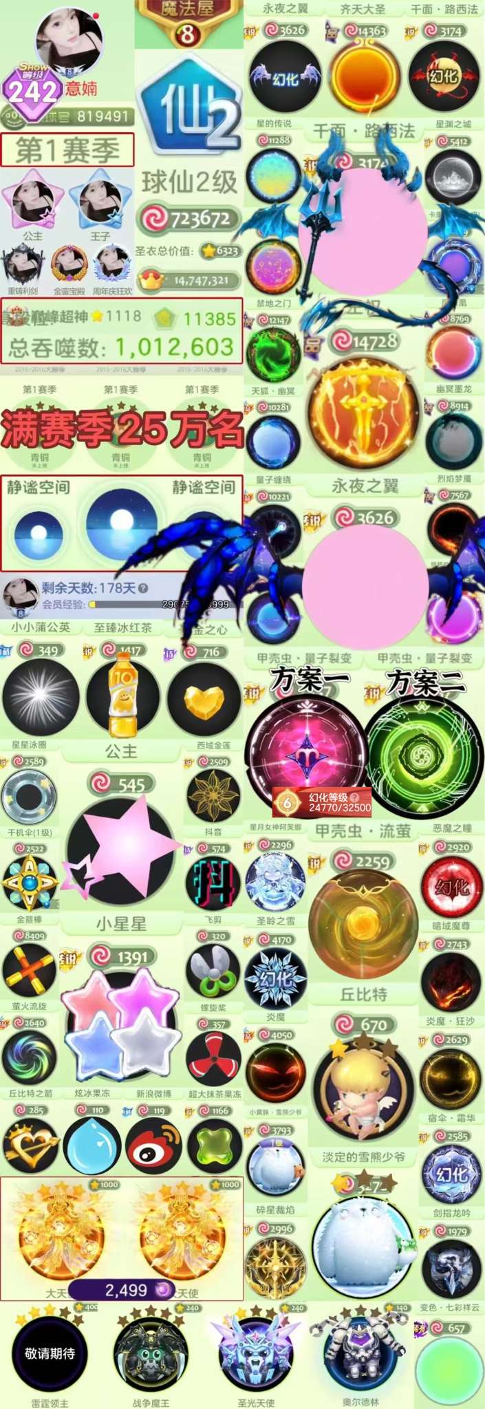【满赛季25万排名 静谧 公主 6级裂变 无边框漩涡甲壳虫 路西法】大翅膀 王权 大圣 丘比特 大白