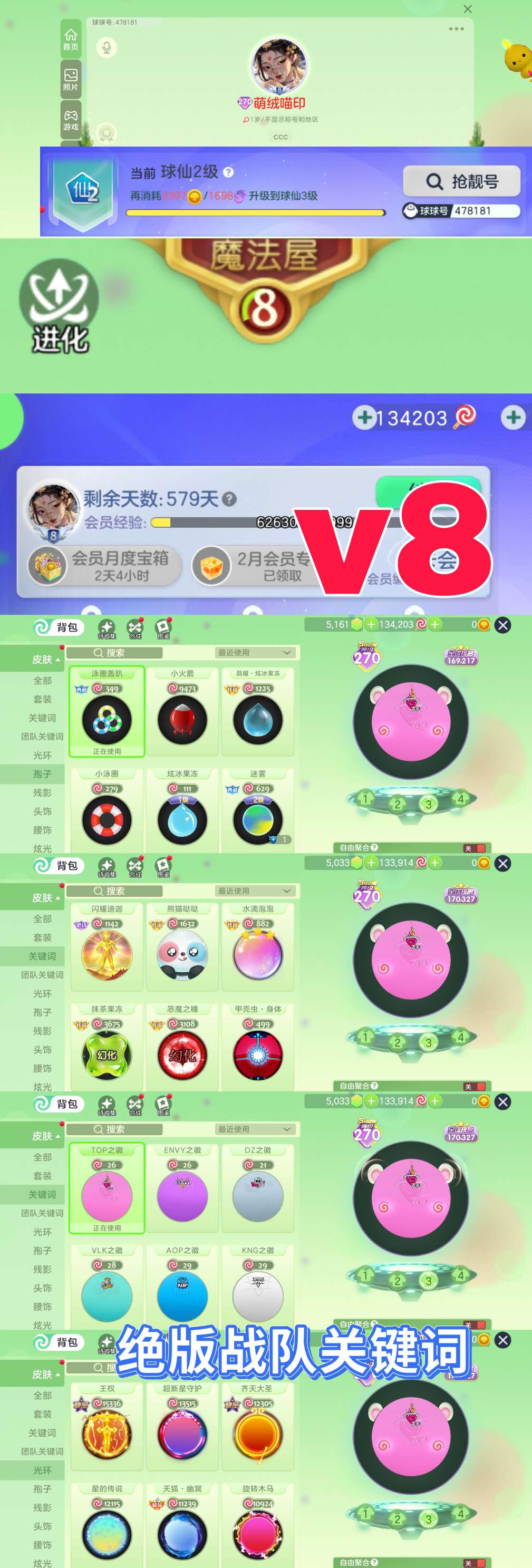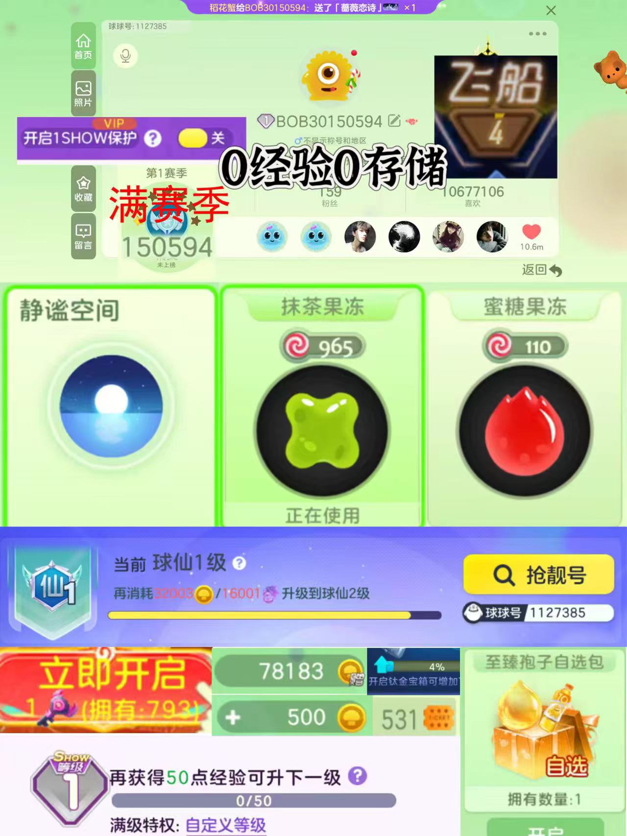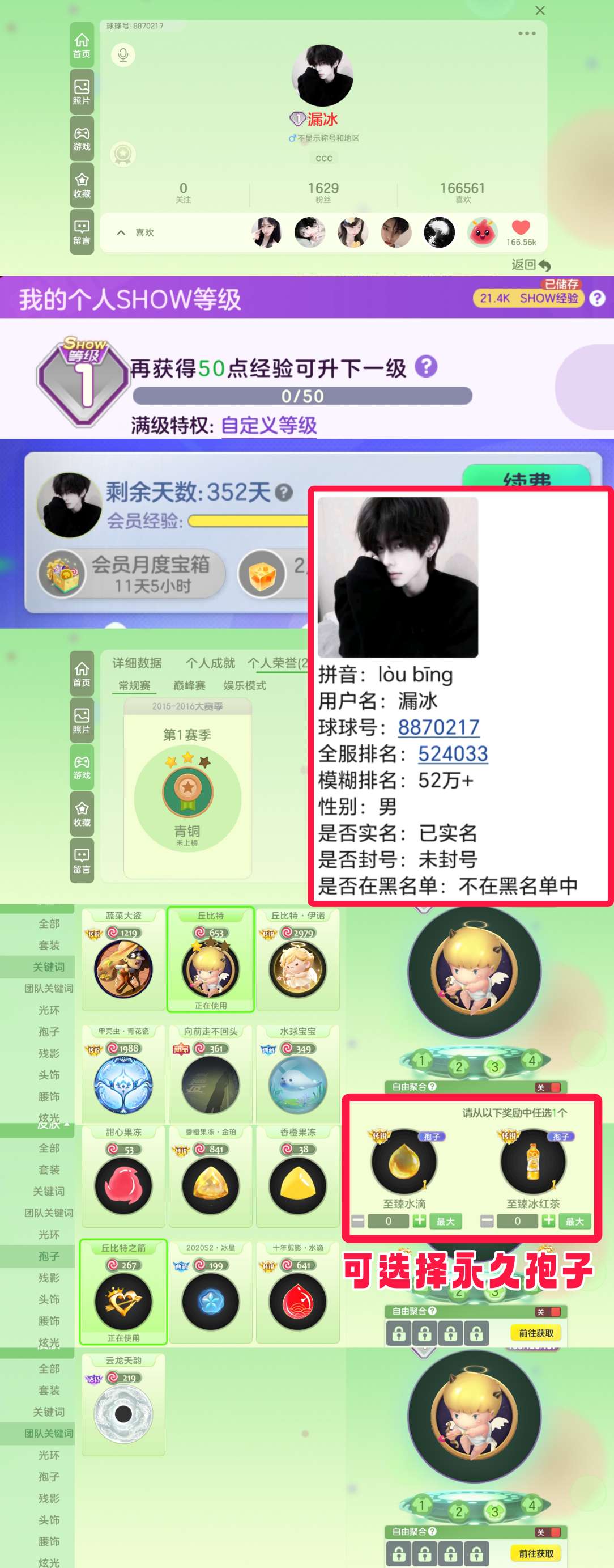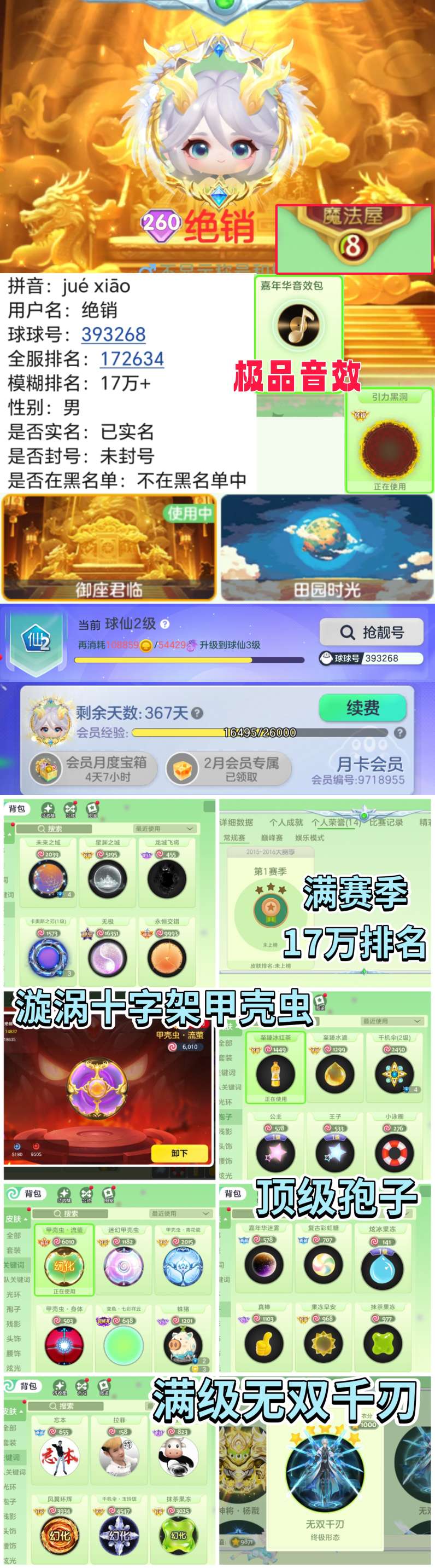 【会员1年/1秀满赛季/52万排名】【青花瓷甲壳虫/丘比特一套/至臻孢子】