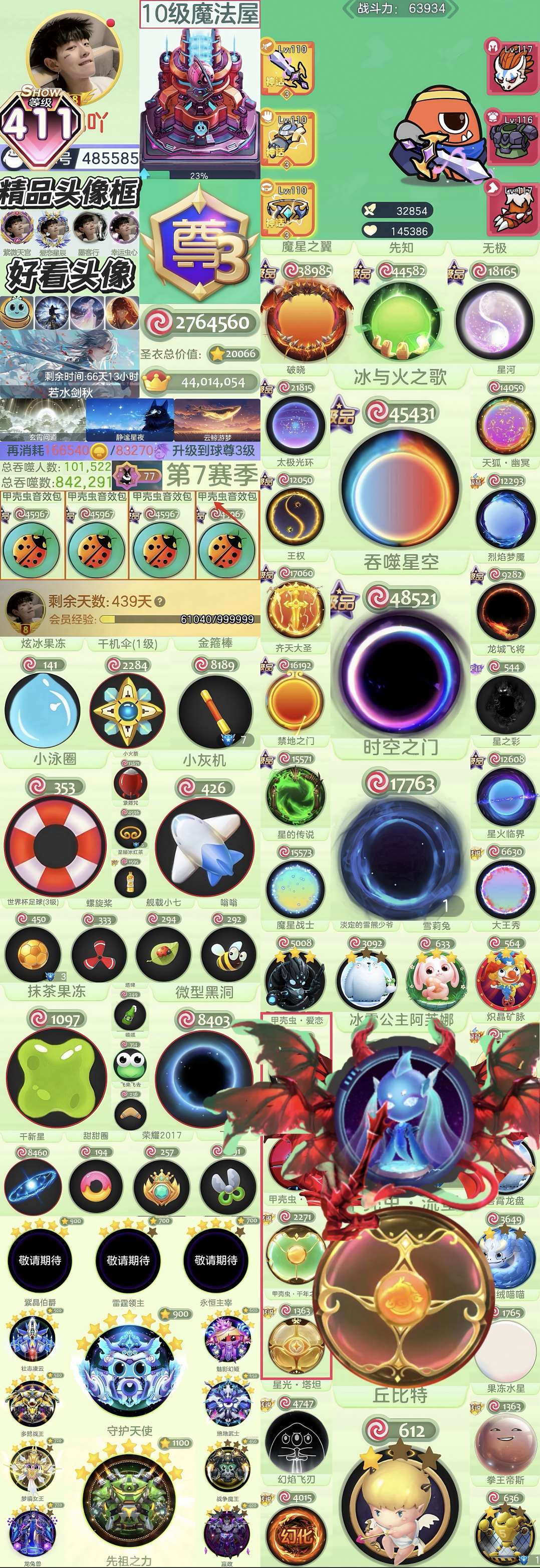 【404show 尊 黑洞 时空 鲨饱饱 阿芙娜 甲壳虫漩涡 路西法大翅膀 裂变 第9赛季】魔星 冰