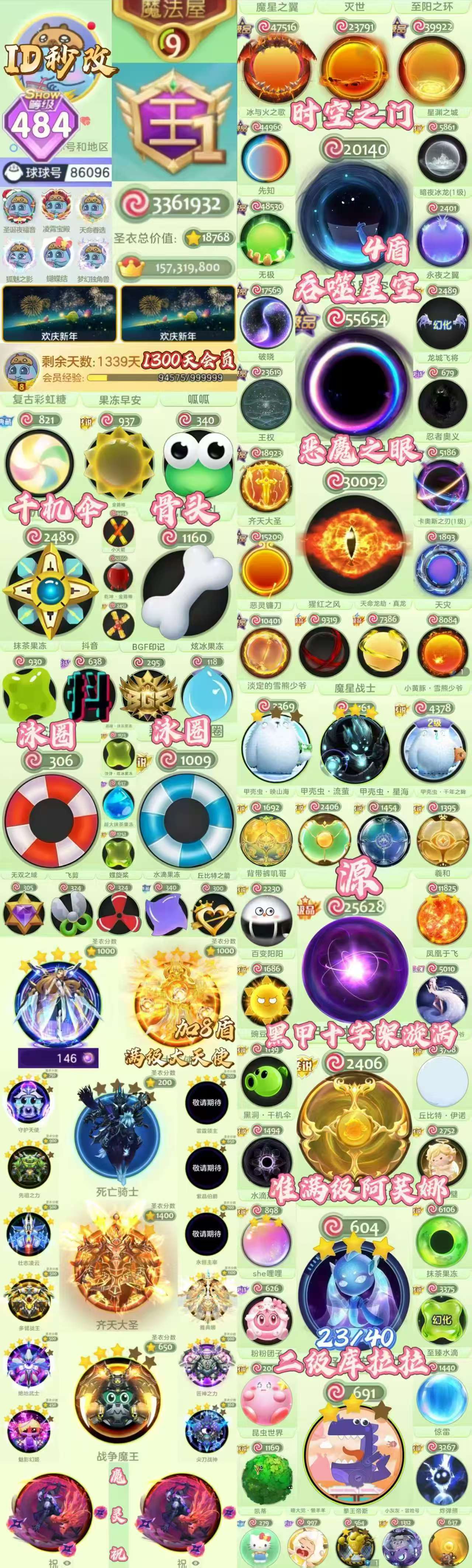 球球大作战账号,资源很丰富,皮肤、圣衣、魔灵、光环啥的都有,具体看图~账号等级高,ID、资源都在