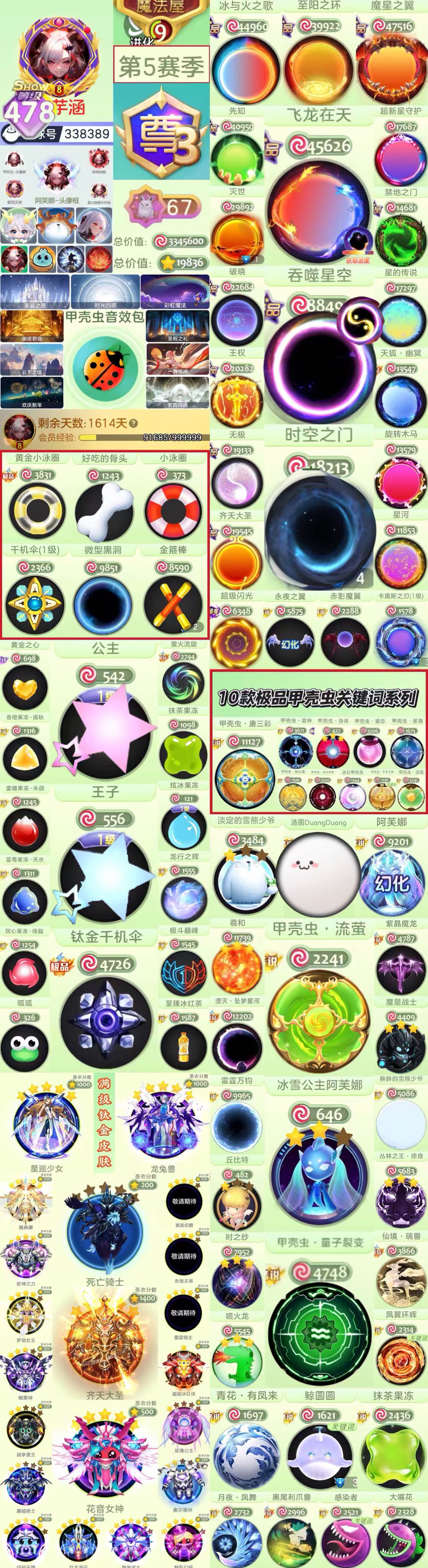 【285show 尊 破晓 第4赛季 灰色路西法 大白 冰红茶】无极 大圣 甲壳虫 满级雅典娜 水滴