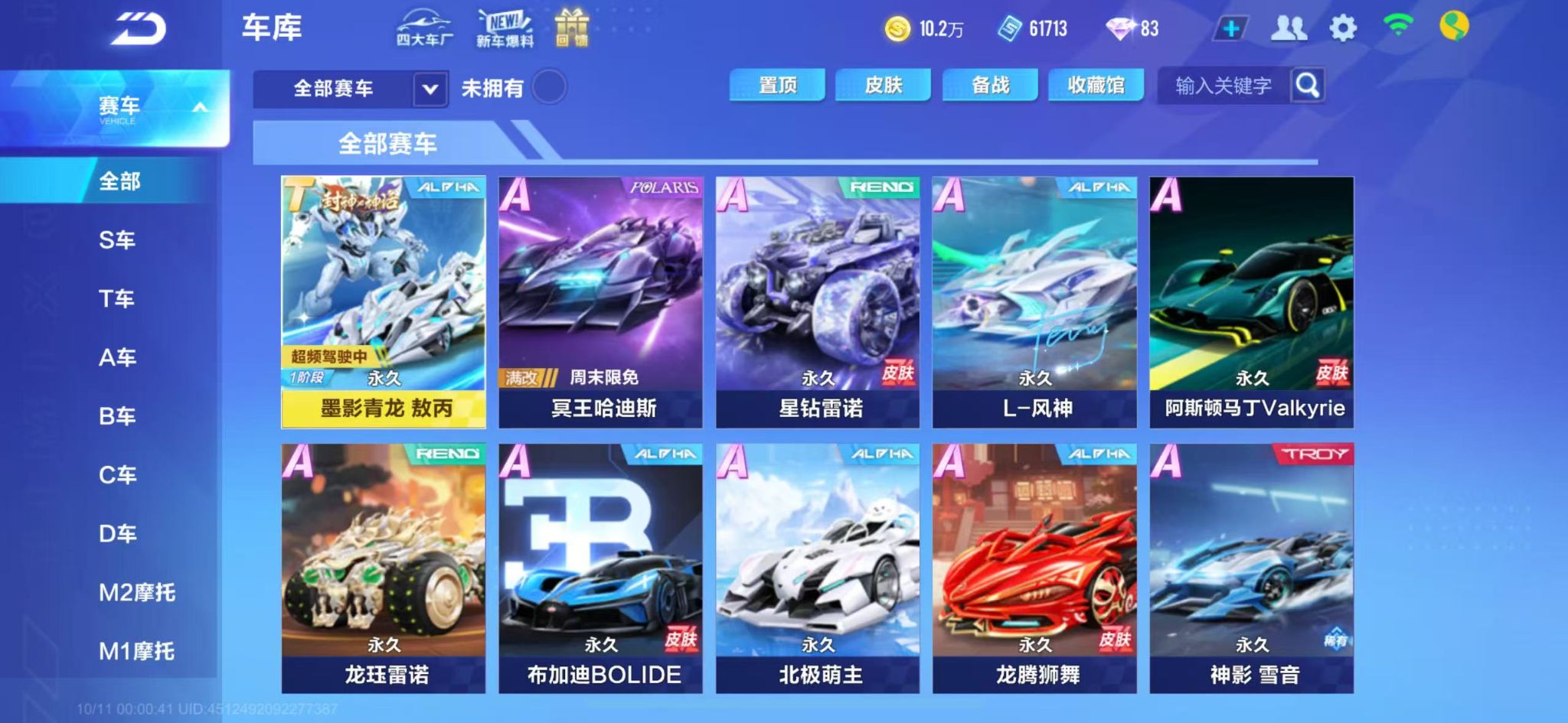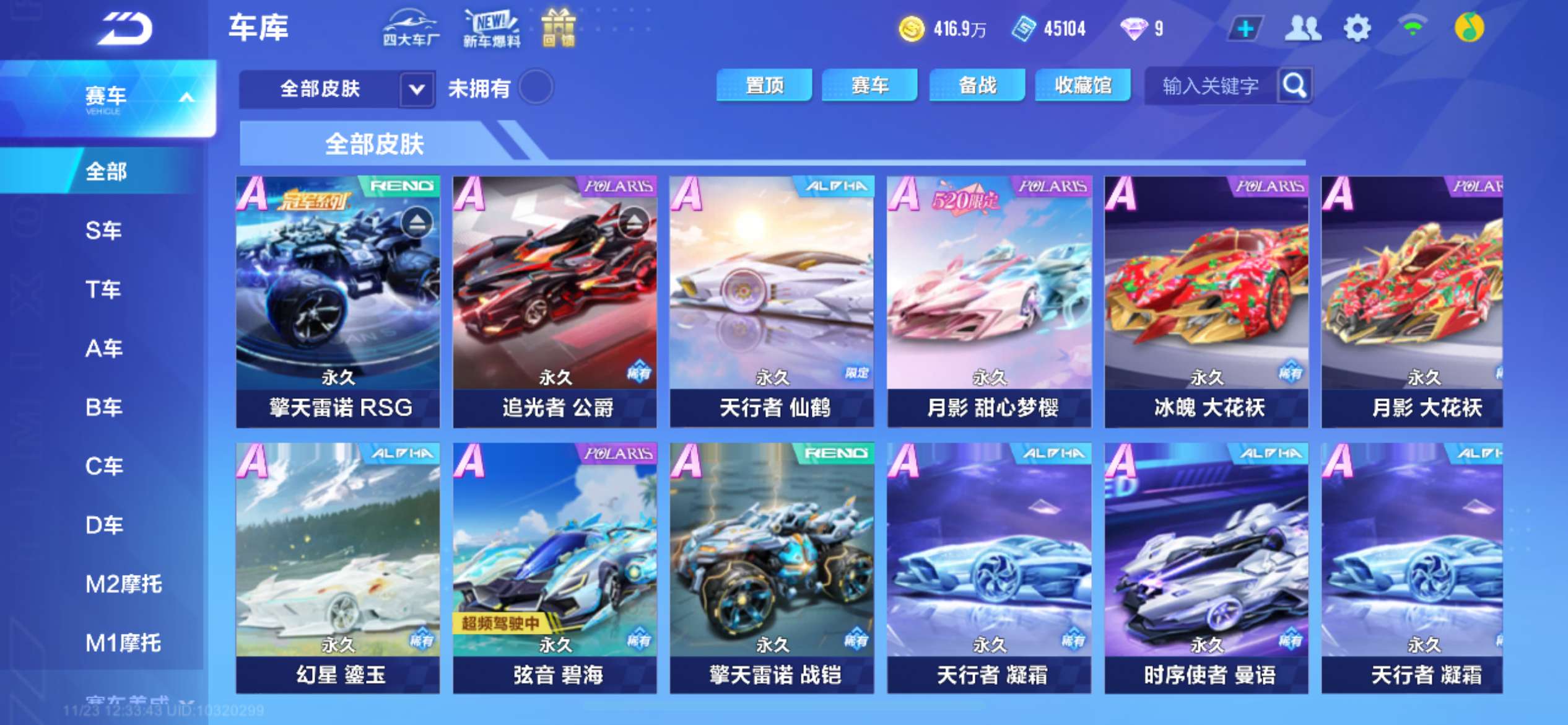 魅娅缘汐A车数量16游戏等级71贵族等级4车皮肤数量10安卓