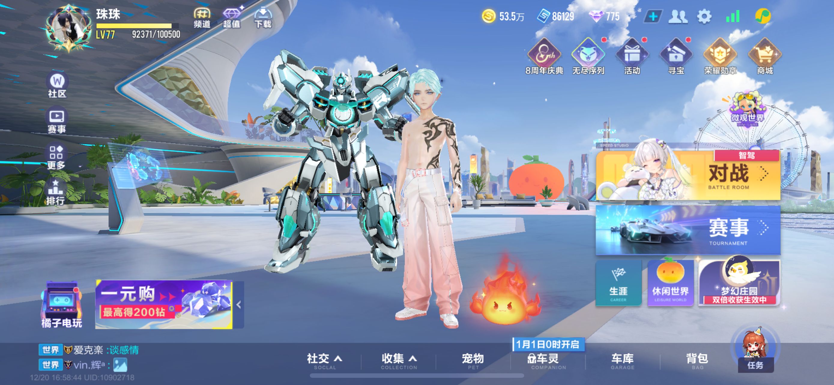 冰魄带皮肤 魔法套 机甲宠 还有一个顶级座椅高质量衣服高质量车库