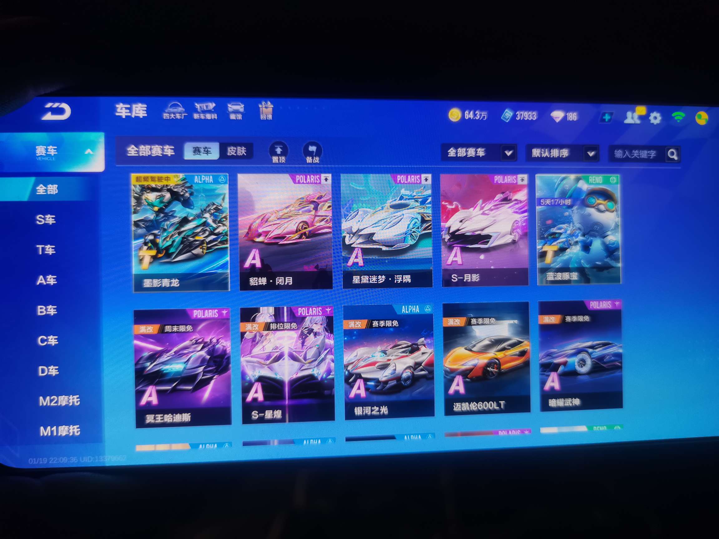 32A 满改S-溯光联赛车 带狼队皮肤 68万点券大量服饰箱子科技点物资等等成品号可二次