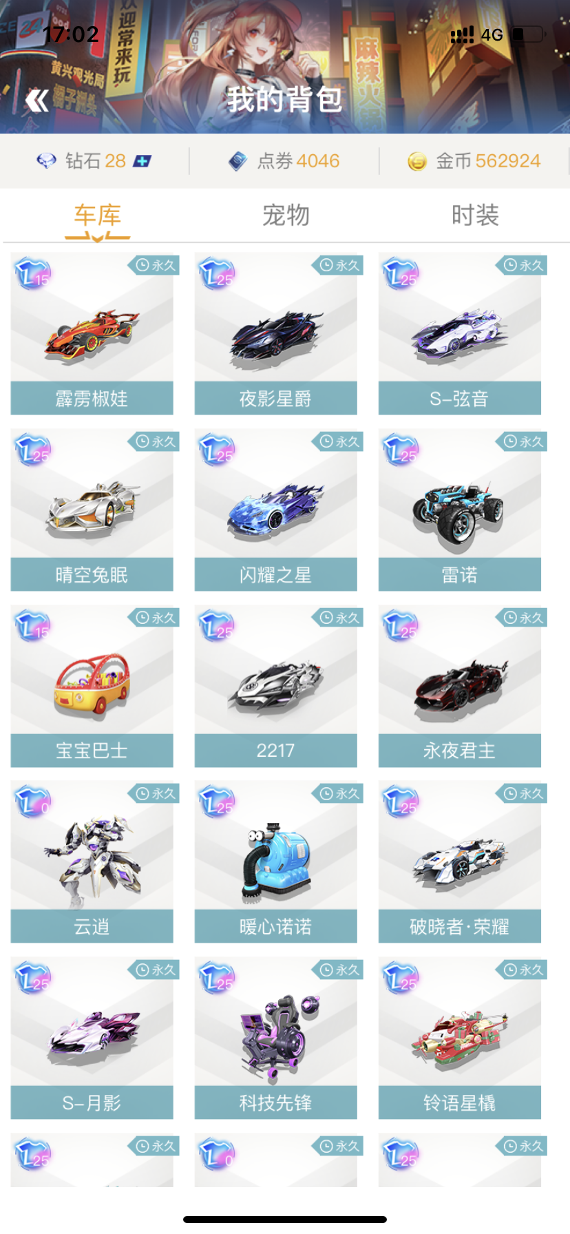 QQ飞车手游【苹果QQ】云霄+月影多皮+幻星多皮+弦音战队皮