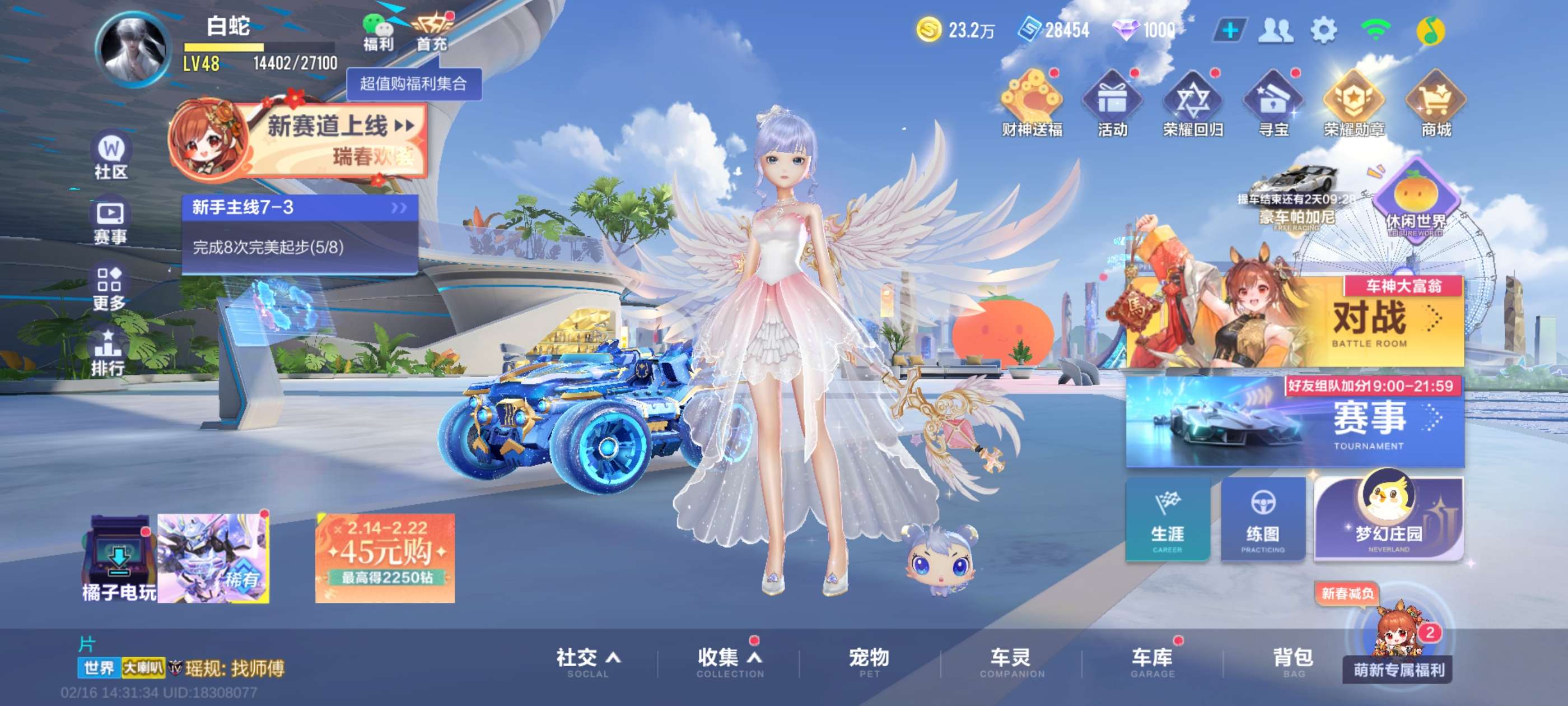 永久15A,1000钻石,23万金币,2.8万点券,微信社交功能被限制有需要使用的可根据提示解除限制