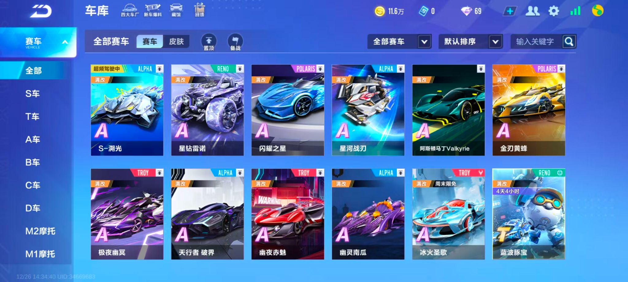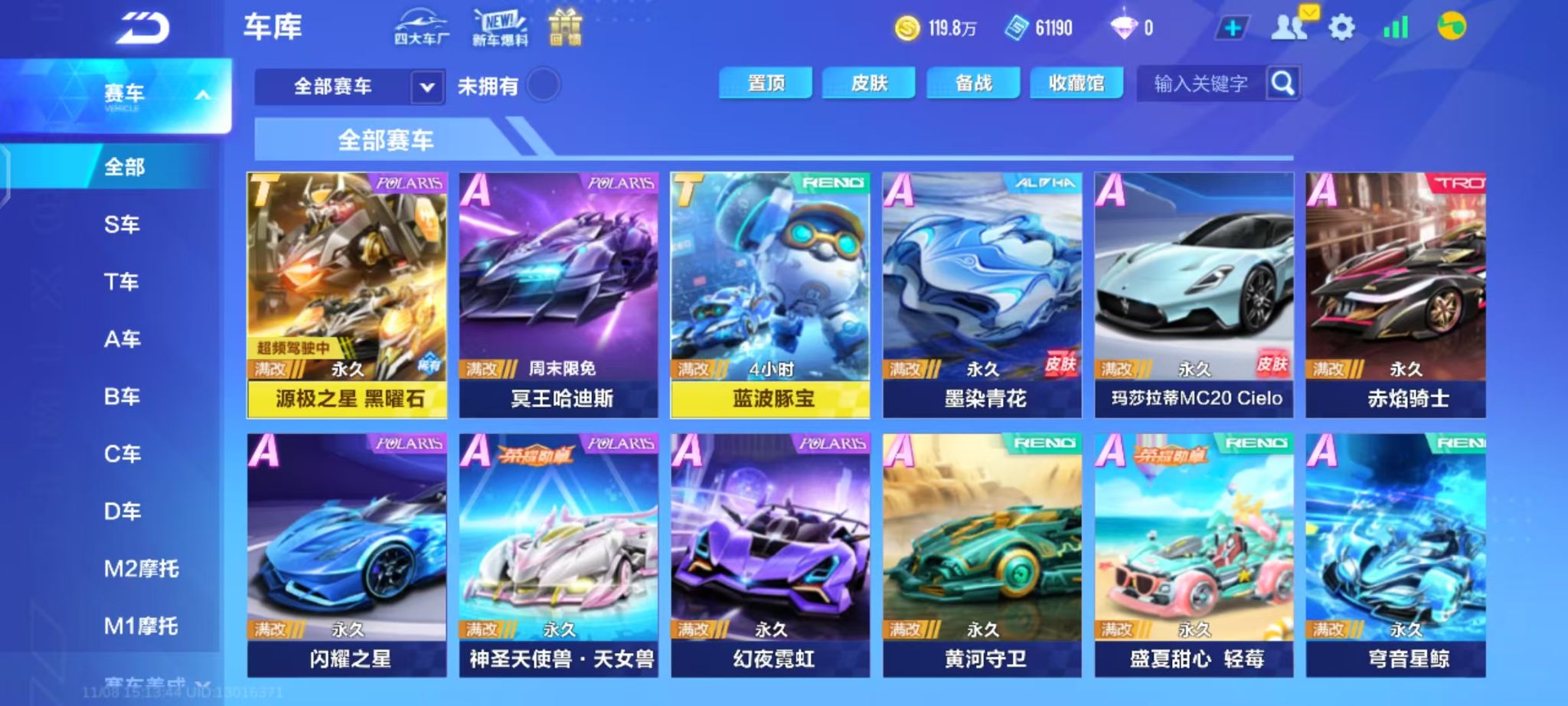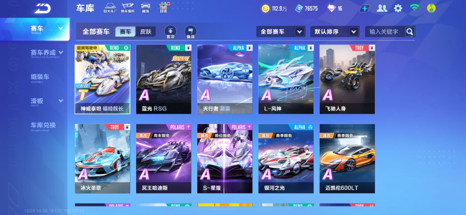 单联赛霆光A车数量15游戏等级68贵族等级6车皮肤数量6安卓