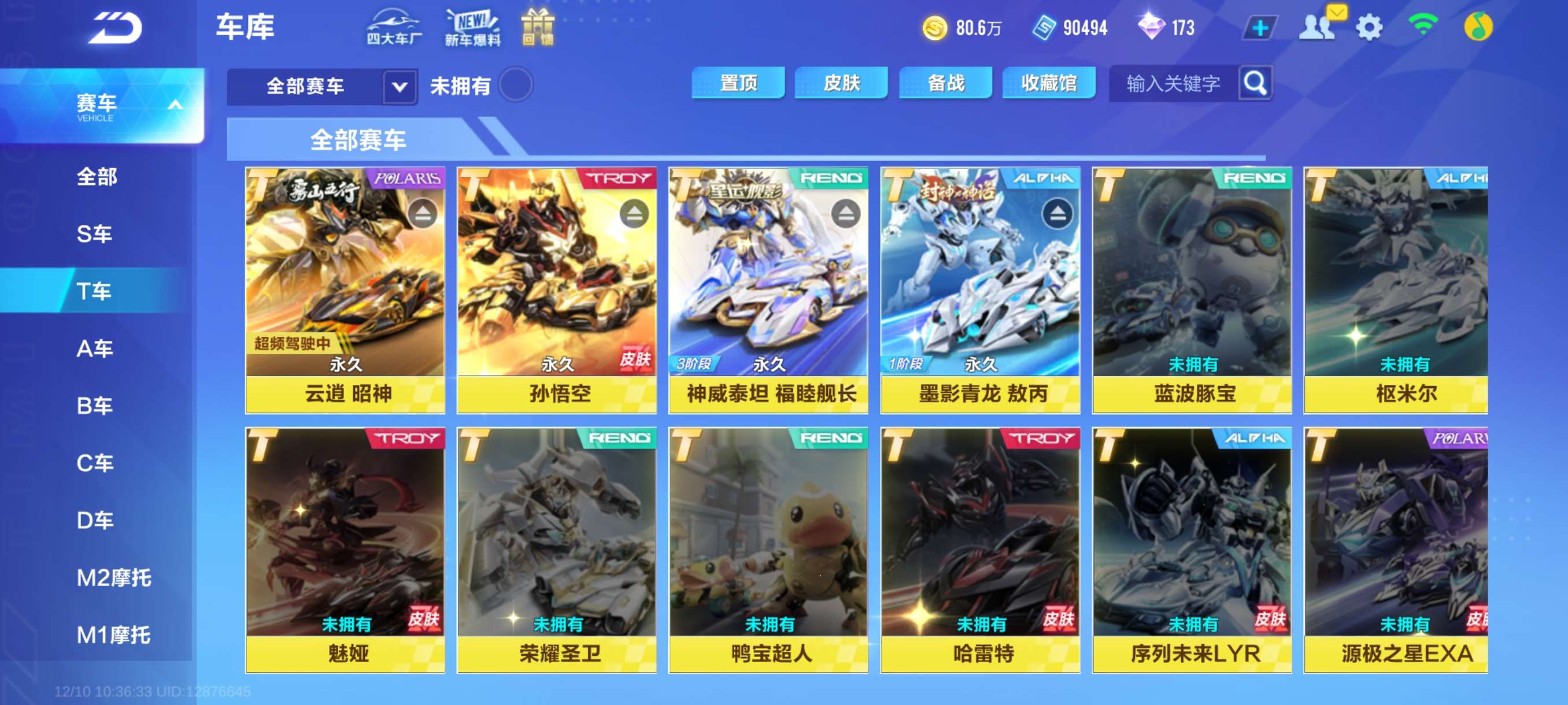 冰魄+霆光+璨雪恋歌男装A车数量48游戏等级81贵族等级6车