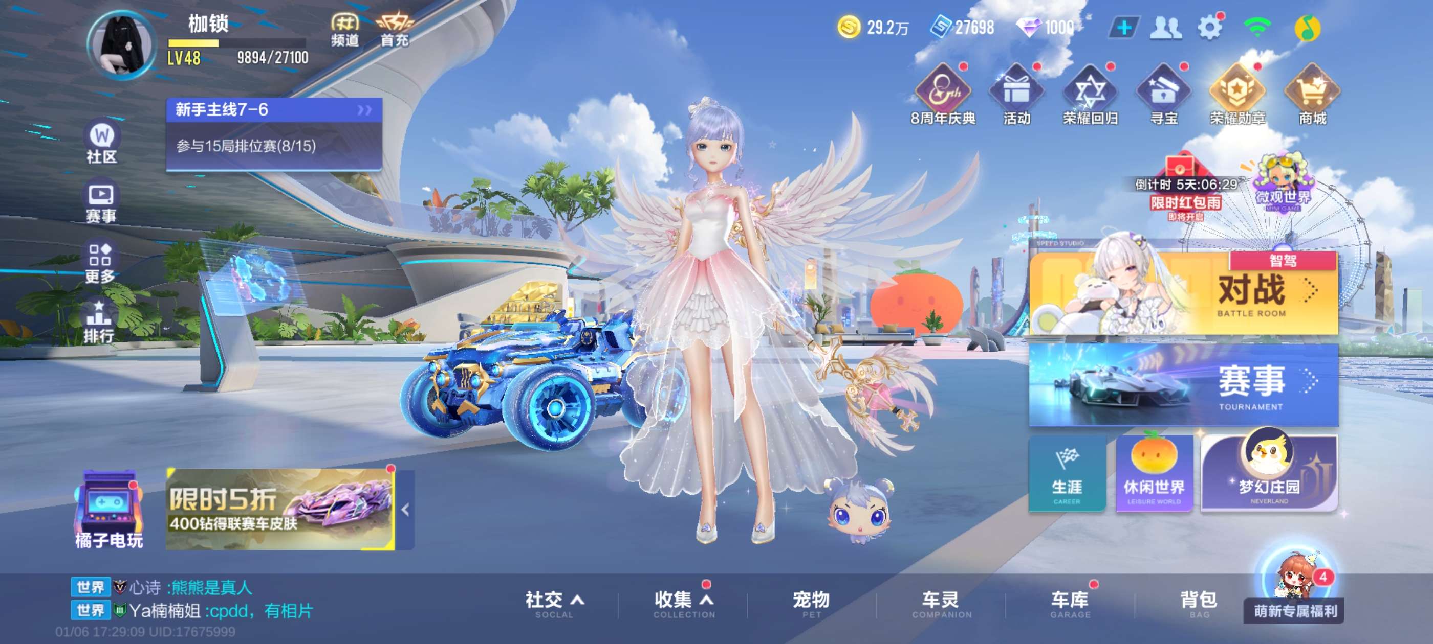 溯光+幻生星漓灵潮女装A车数量16游戏等级53贵族等级6车皮