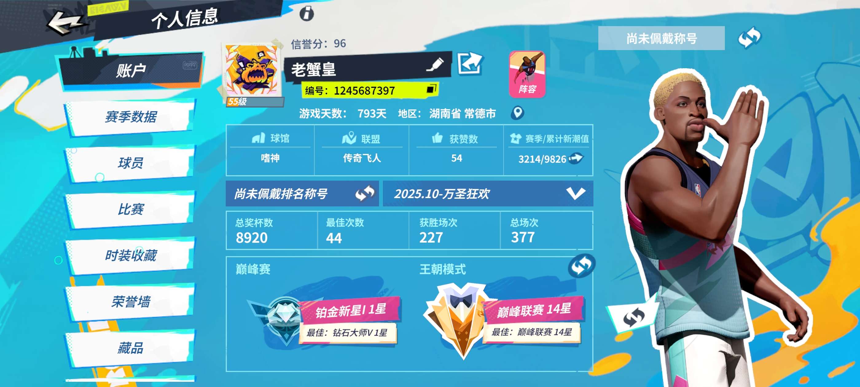 街球派对老号,64级,永久会员!,有浓眉专属球衣,可小刀