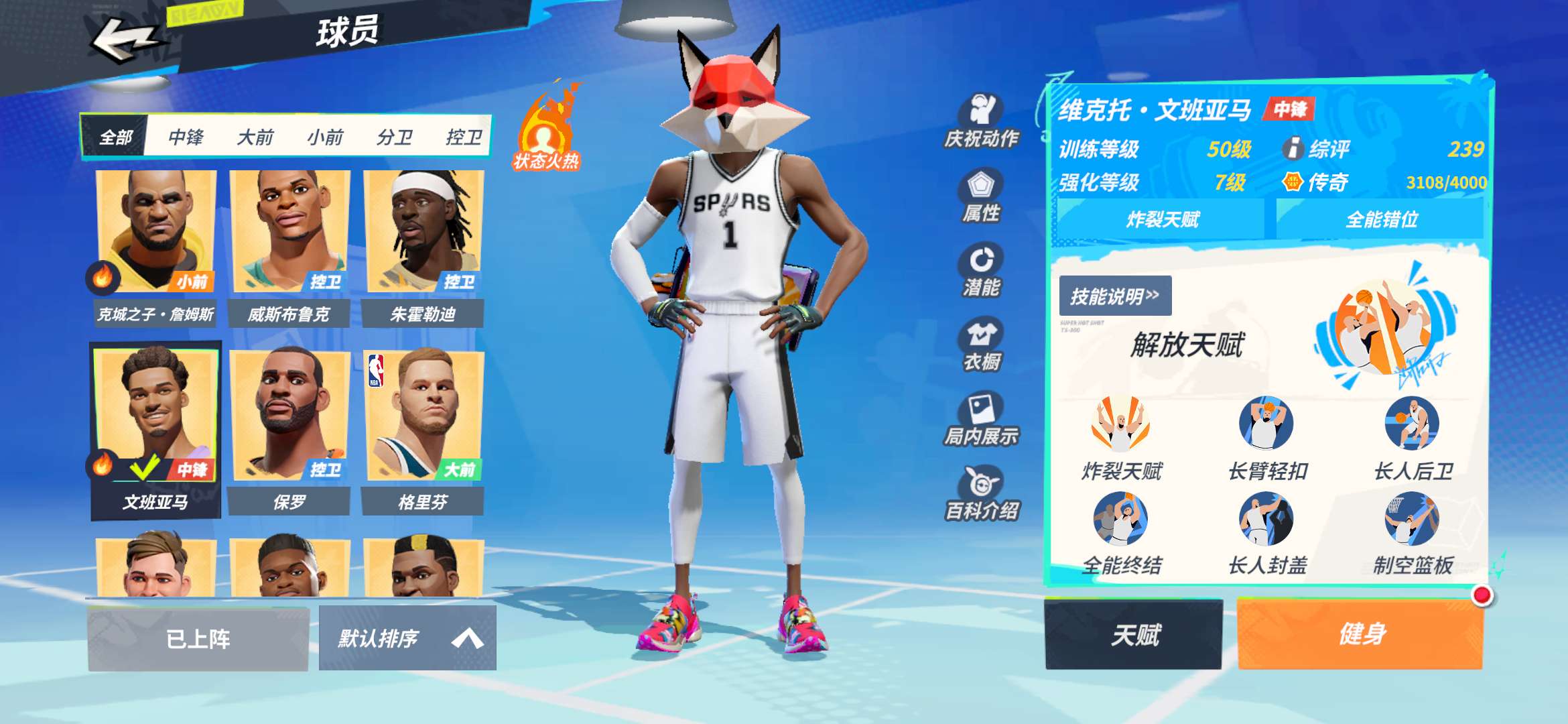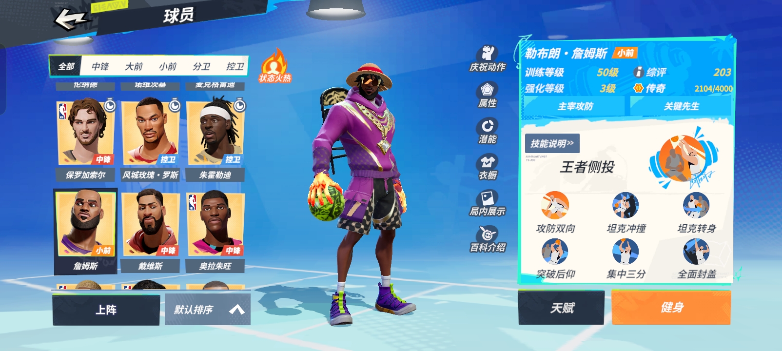 满突克詹,2突马龙,送老詹,文班,大本,司机,哈利。4突特纳
