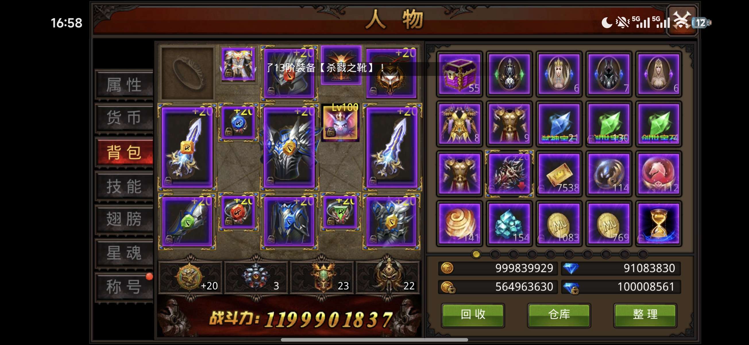 新区霸区果盘自助折扣V9实力霸区 仓库好几页装备 三个小号小号仓库有很多装备各职业八阶,九阶武器等