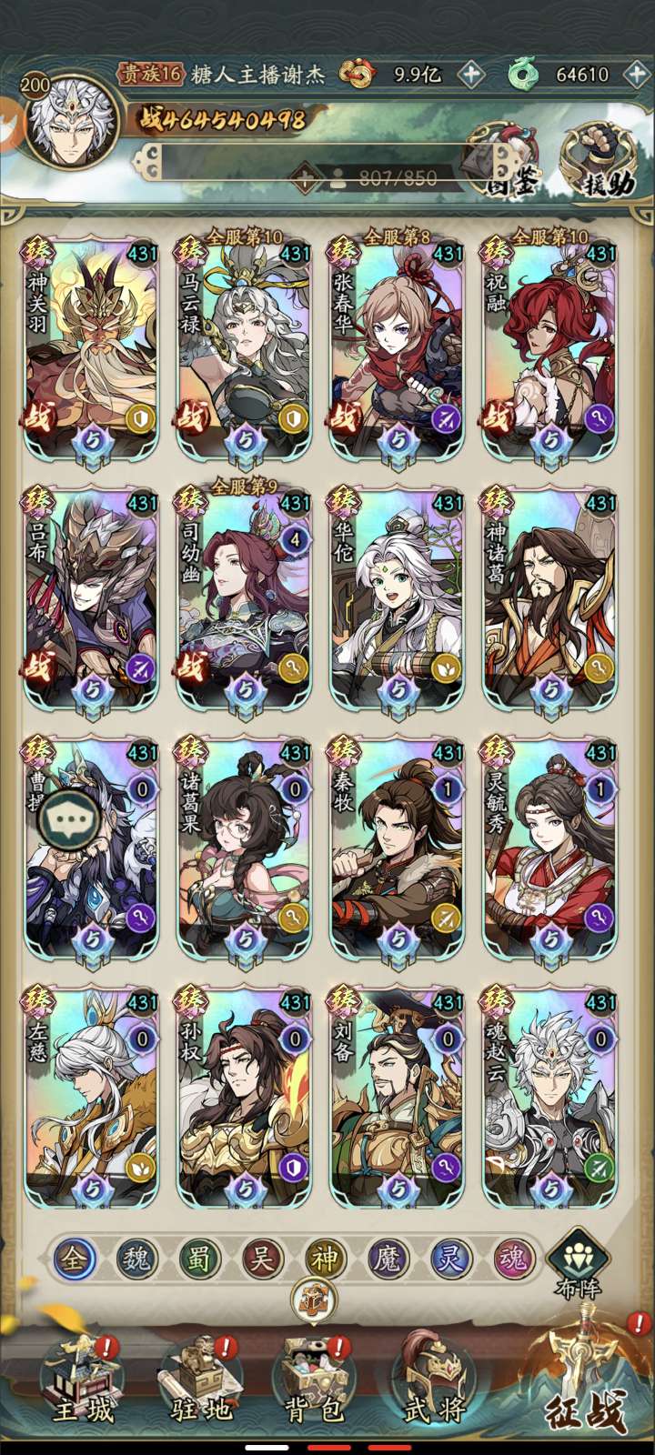 4.64亿,白嫖极品养老号。马云禄,张春华,吕布,祝融,司幼幽6红。 马云路,张春华,吕布,祝融满命