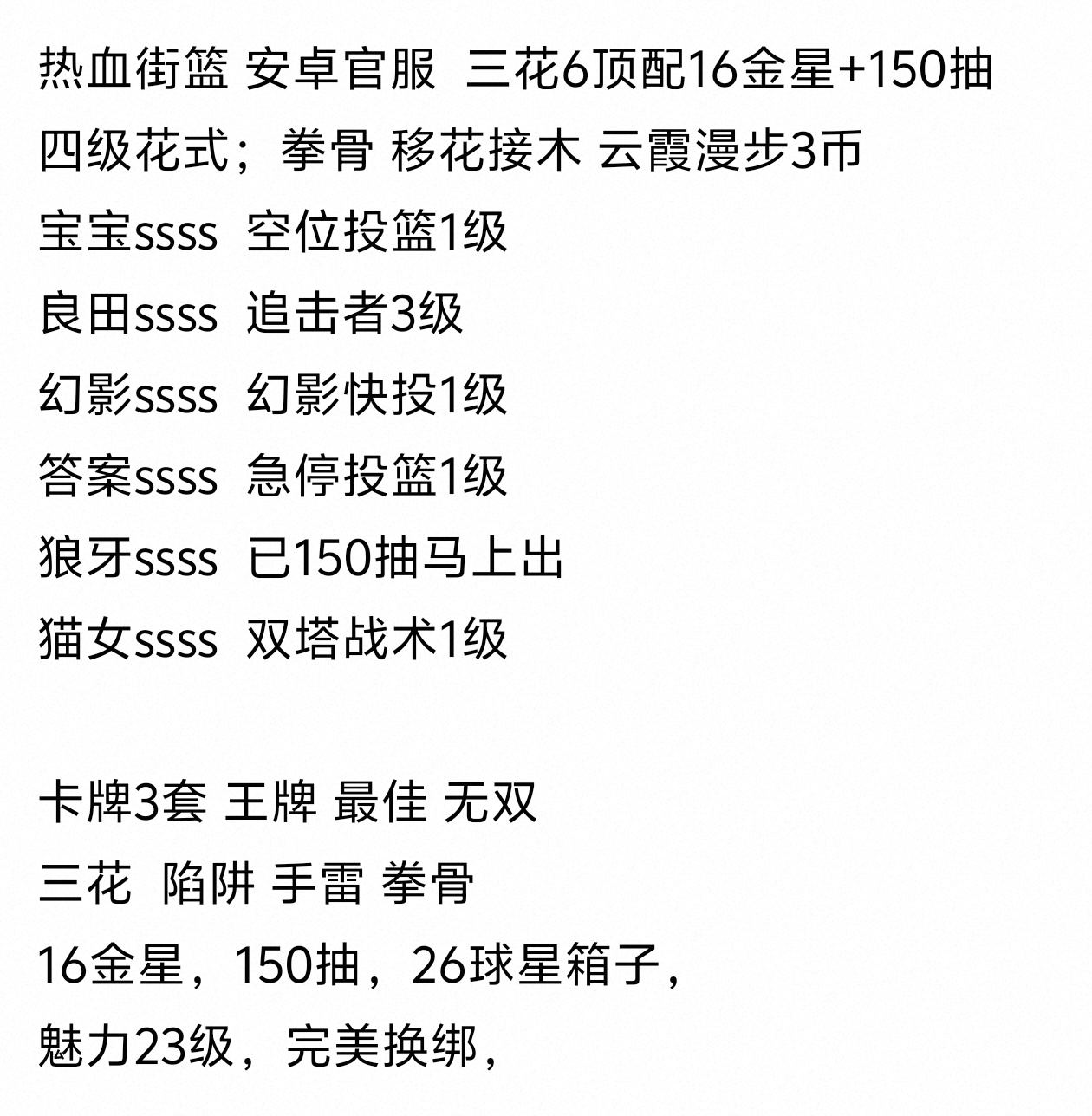 热血街篮个人号退游不想玩了,号上资源还有很多