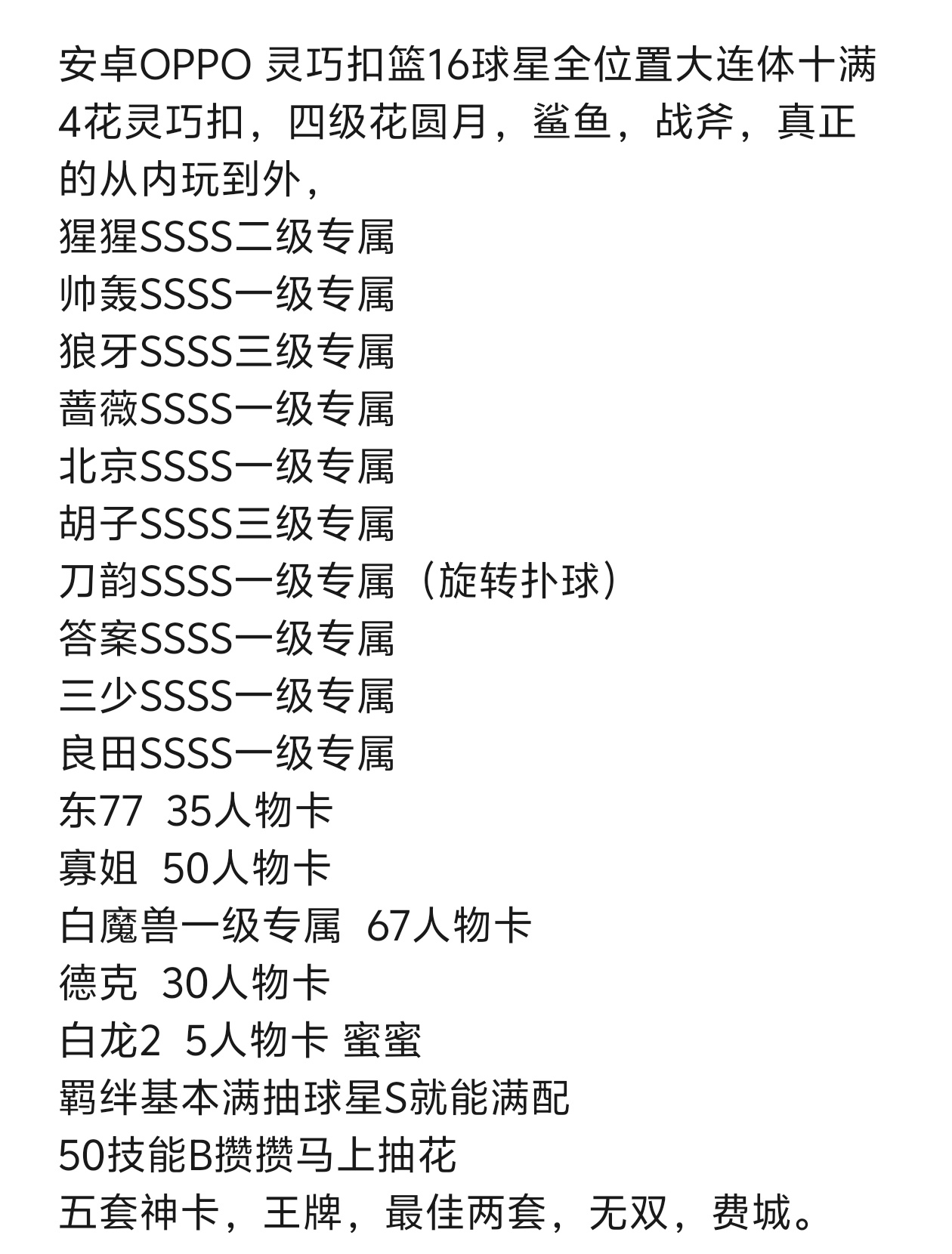 安卓OPPO 灵巧扣篮16球星全位置大连体十满4花灵巧扣,四级花圆月,鲨鱼,战斧,真正的从内玩到外,