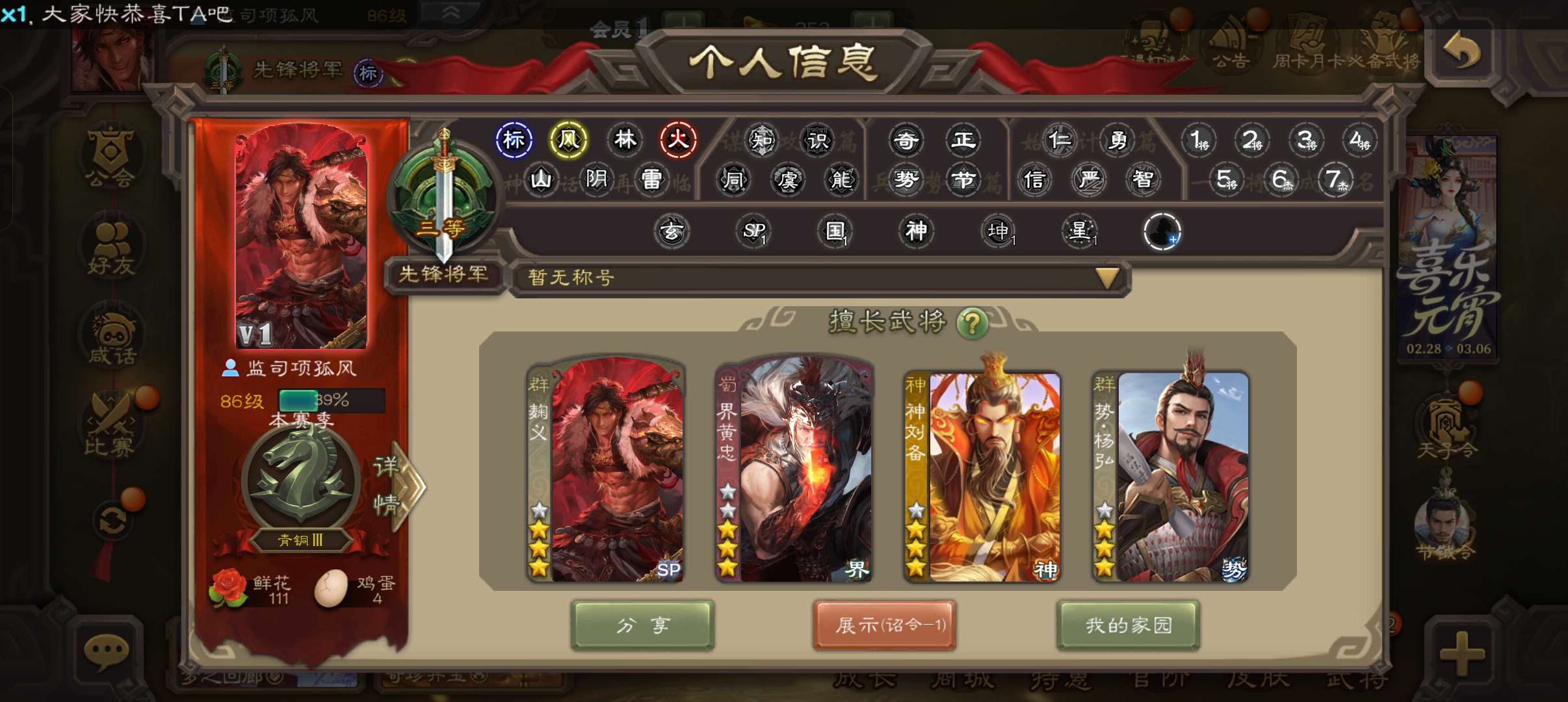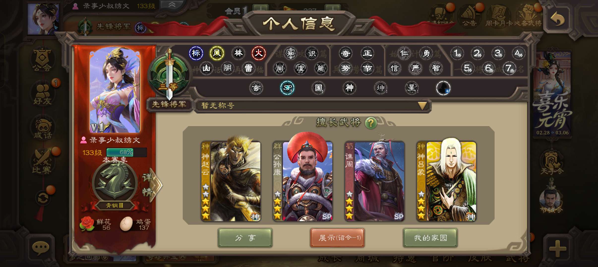 8.3万羽毛5300将魂,神赵云公孙康谯周3史诗先锋,神吕蒙甘夫人谋卢植谋韩当谋高顺148将