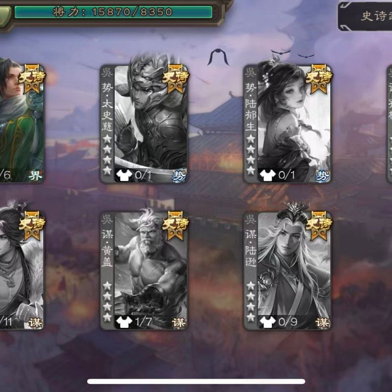 百夫长40宝珠(可换杜预)4史诗10万羽毛1.15万将
