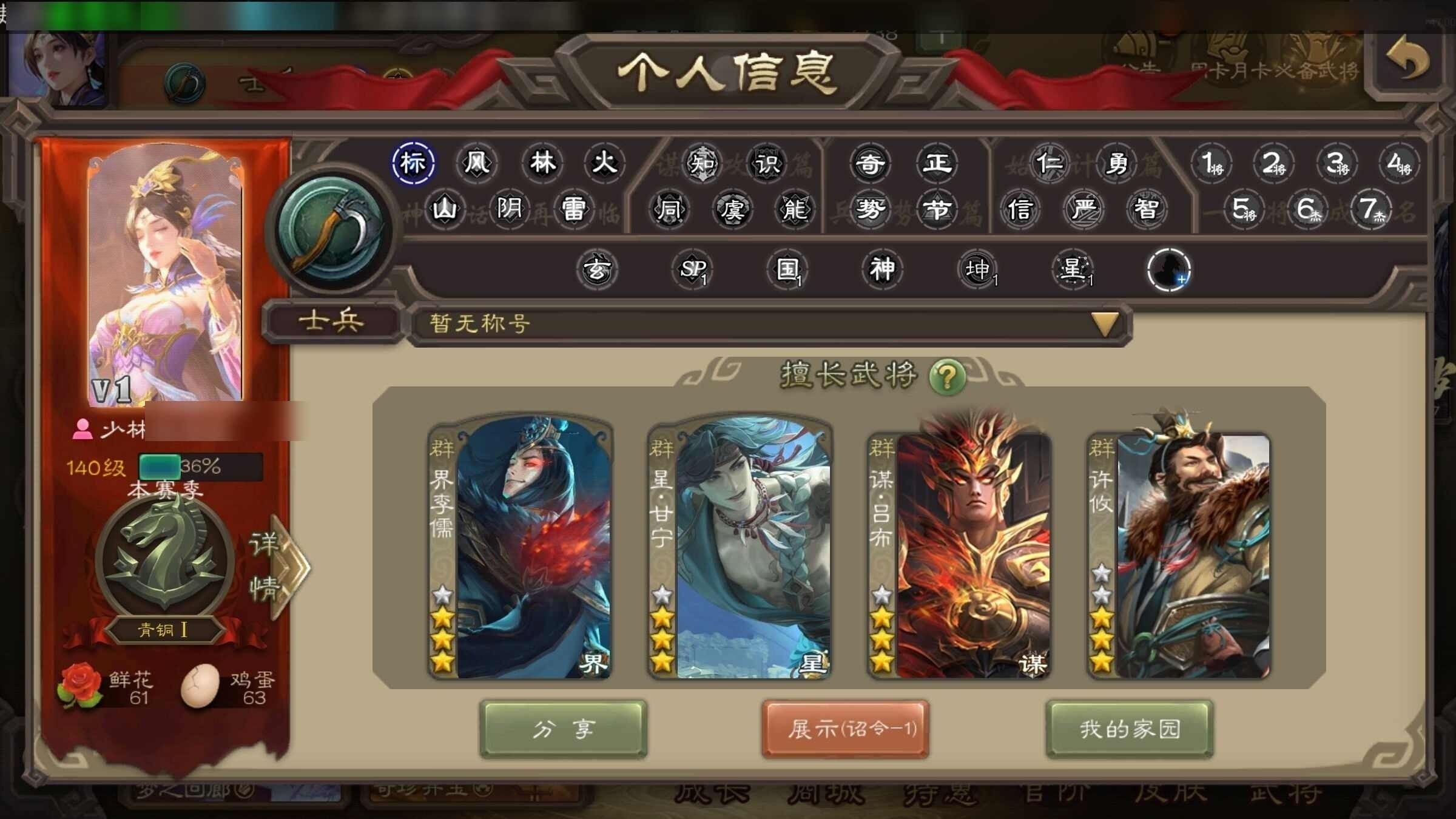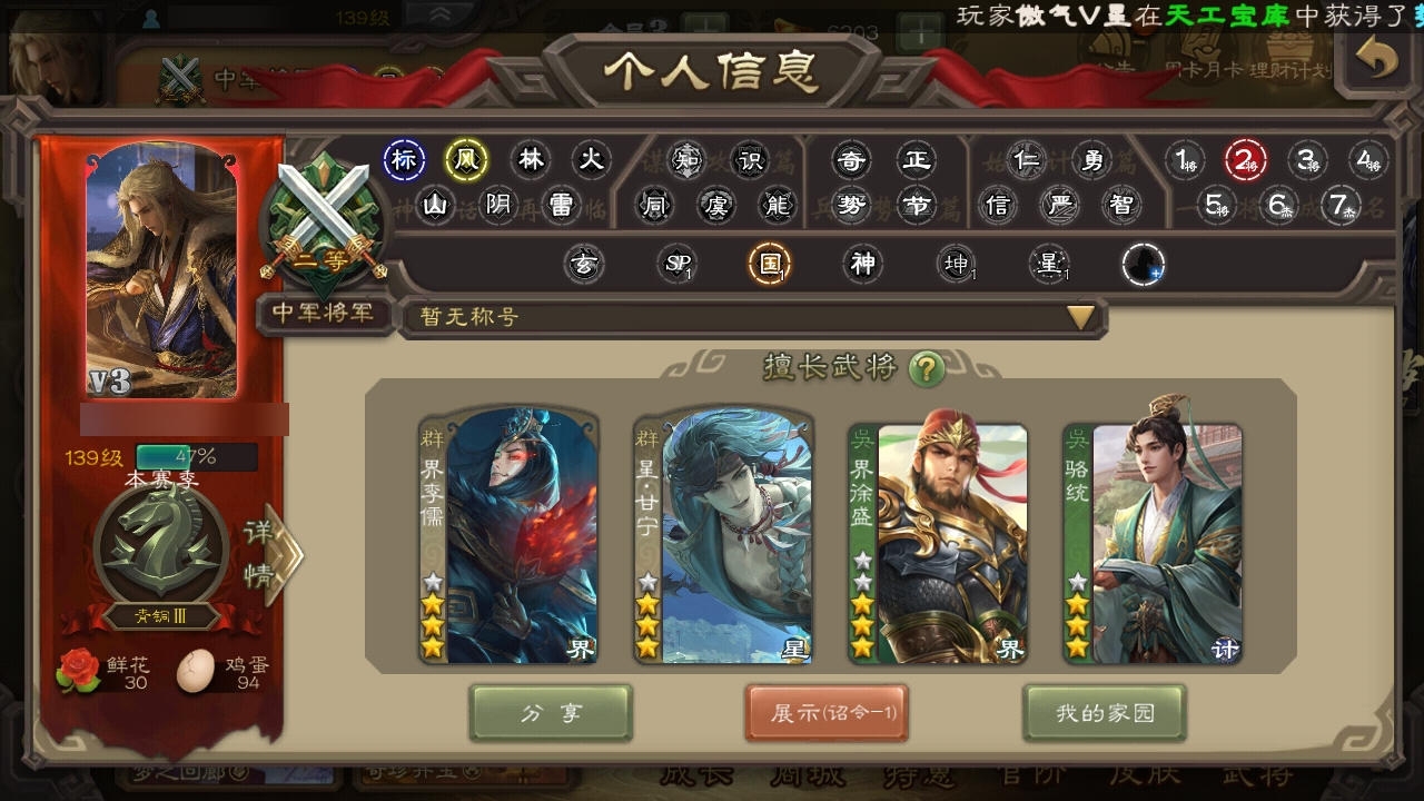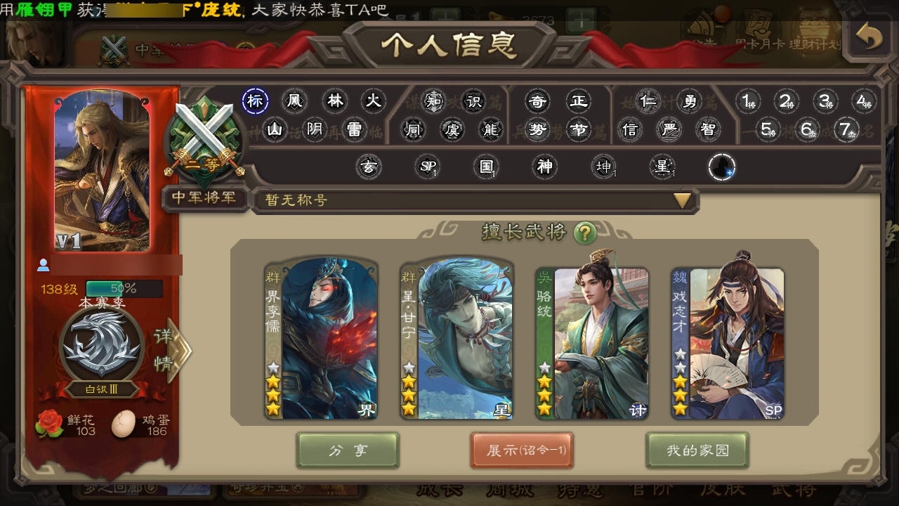 军争掀桌王神吕布 神刘备拘义吴班等等排位武将还有陈到啥的摧琰还有界全琮摇钱树准备满级现有2千元宝