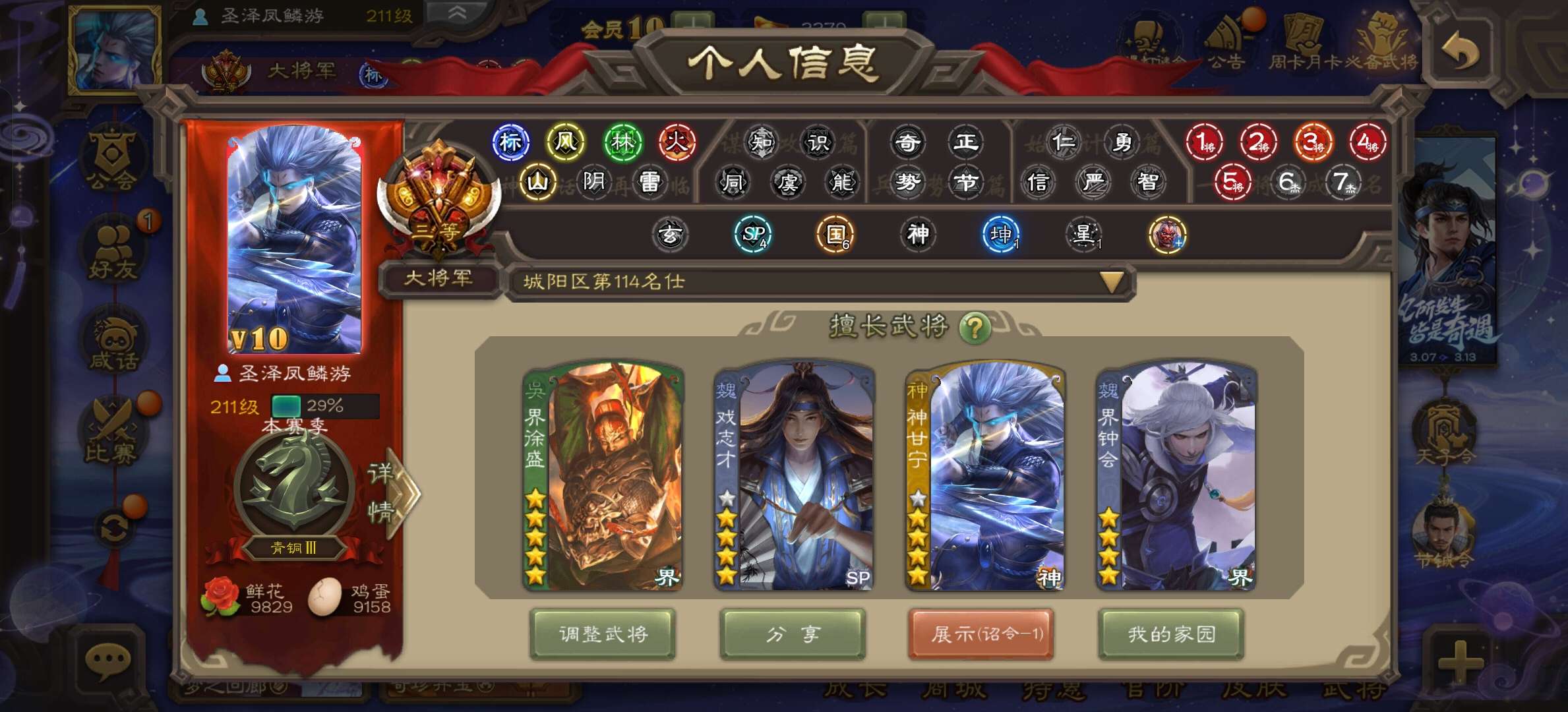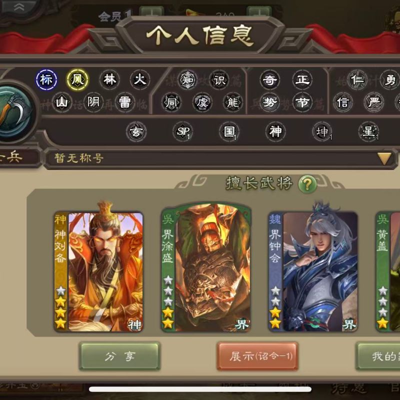 退游戏了,不玩了,势魏延,谋关,大宝,和尚,界钟会,还有10颗宝珠