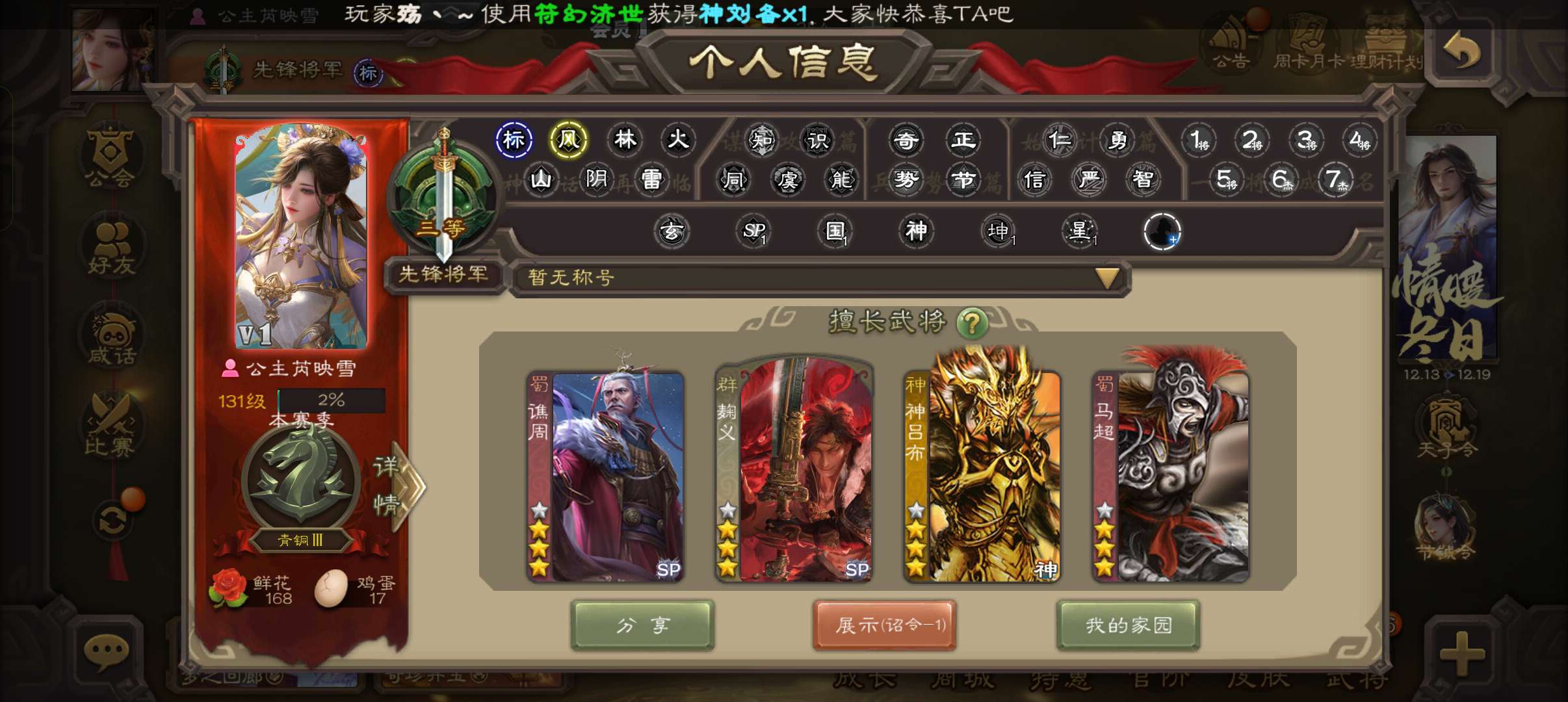 4480将魂7万羽毛4.9万豆,界钟会星黄忠双史诗先锋,甘夫人界孙权谋卢植崔琰135将