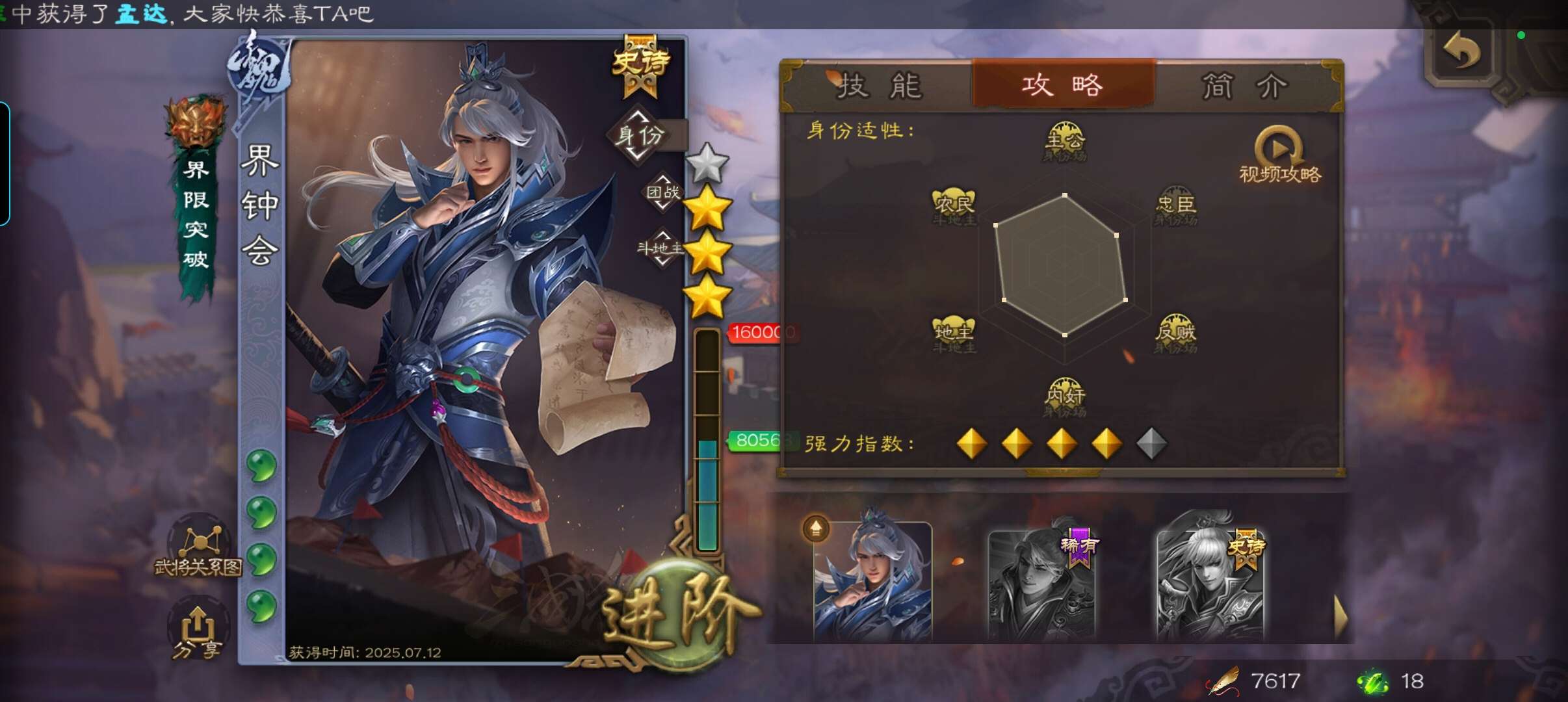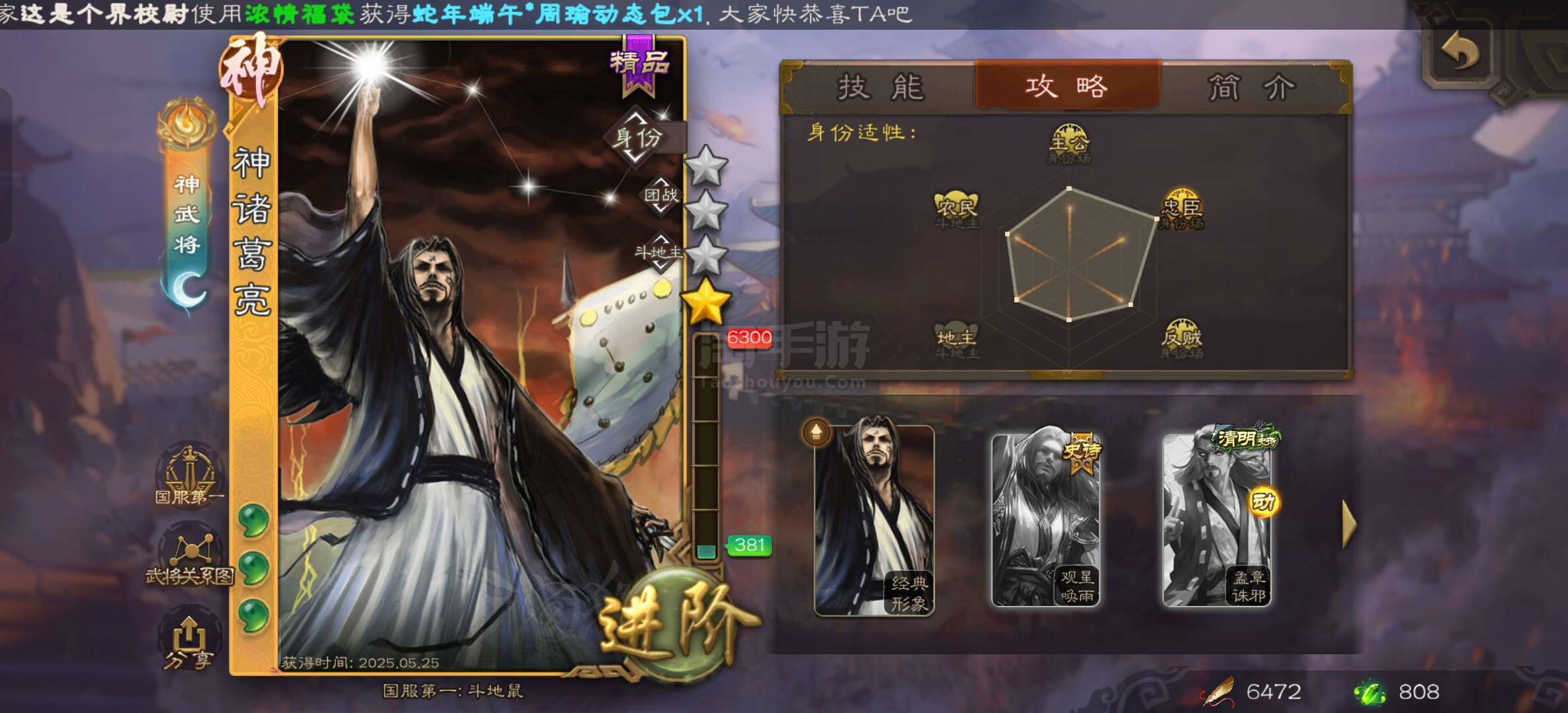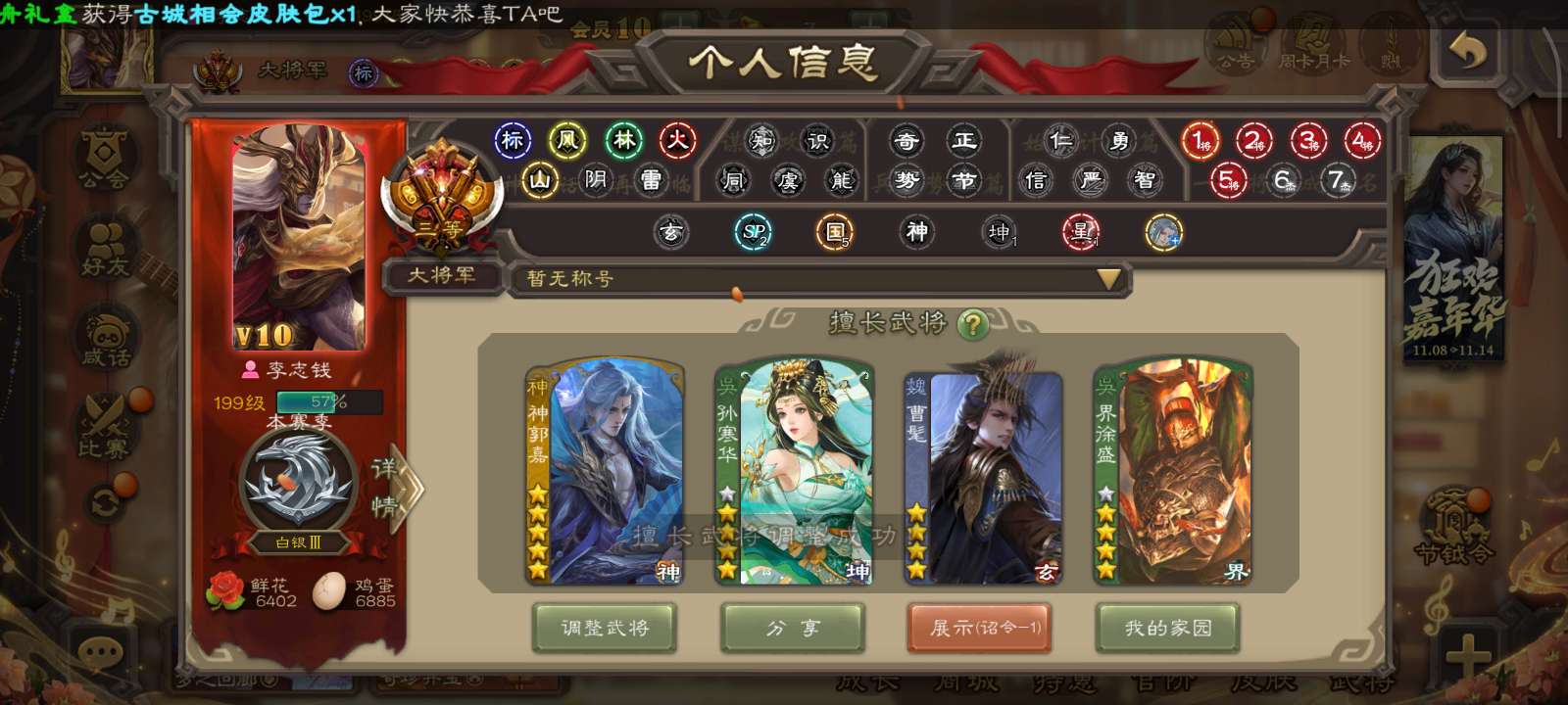 三国杀【安卓官方】三国杀无敌大将军,双形态神郭嘉,动皮孙寒华,曹髦等等强力史诗