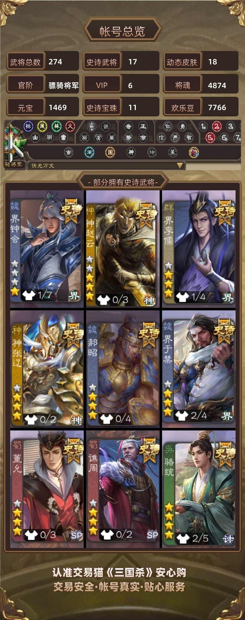 三国杀【安卓官方】【最强史诗盲盒】★必带3-4个史诗武将★可绑定手机改密【官服通用】