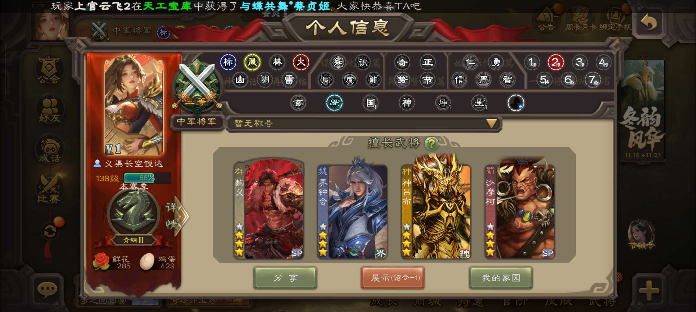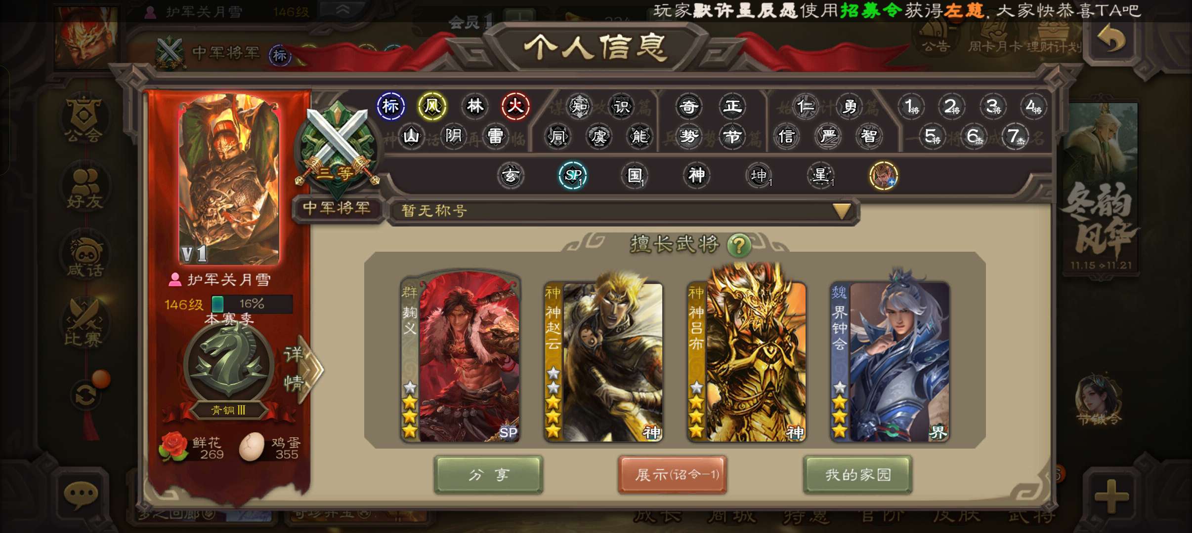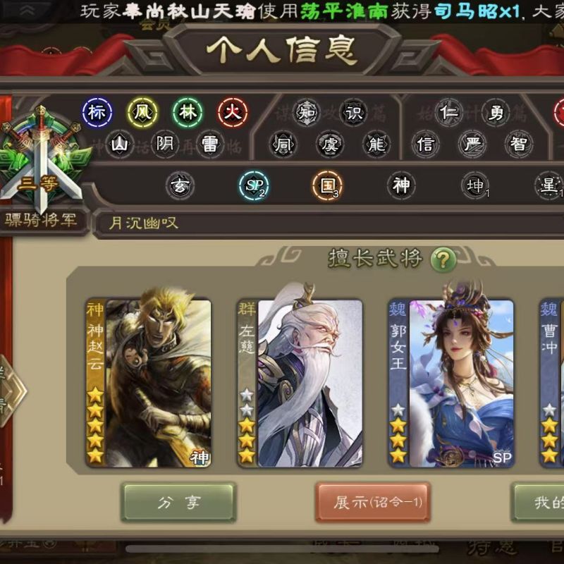 8史诗双神中军,8万毛6万豆,友徐庶,回廊动白马神赵云界钟会沙摩柯谯周界于禁杨修程昱,神周瑜168将